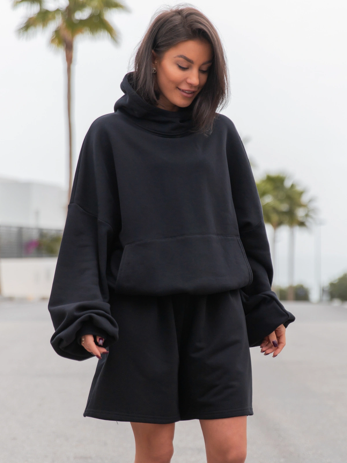 Spodenki dresowe baggy o luźnym kroju, sięgające przed kolano. Idealne na co dzień, siłownię czy letnie spacery. Posiadają elastyczny pas oraz praktyczne kieszenie.