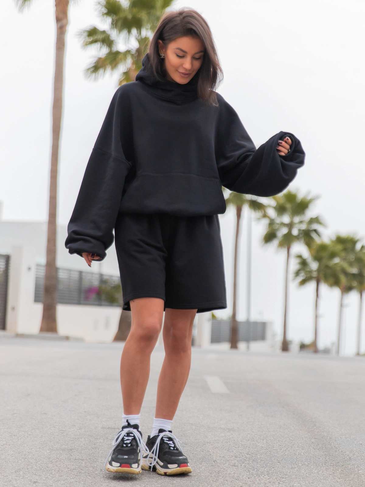 Dresowe bawełniane SPODENKI SZORTY dłuższe baggy czarne X50