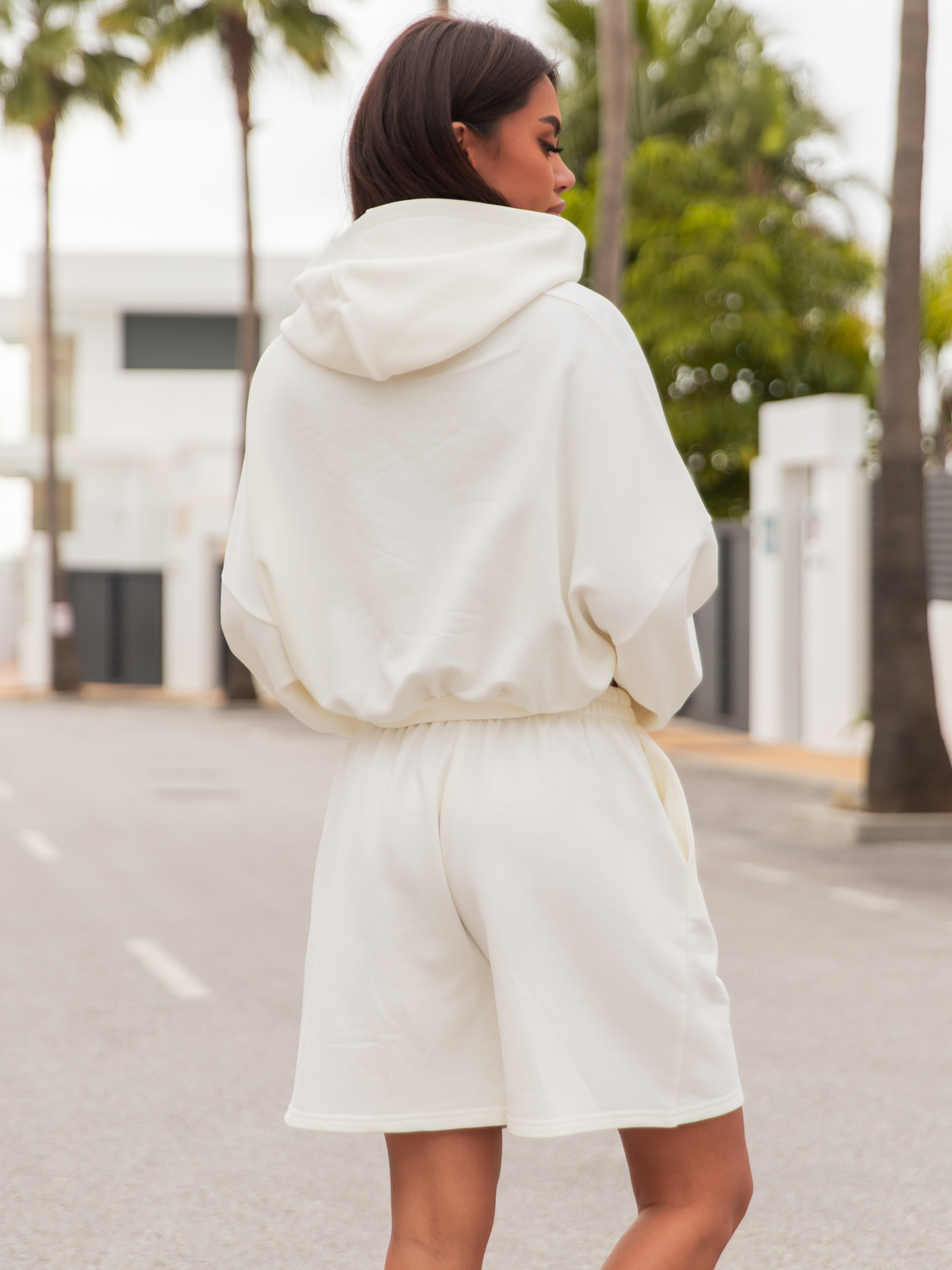 Bawełniana krótka oversizowa BLUZA dresowa z kapturem kangurka ecru X51 k01