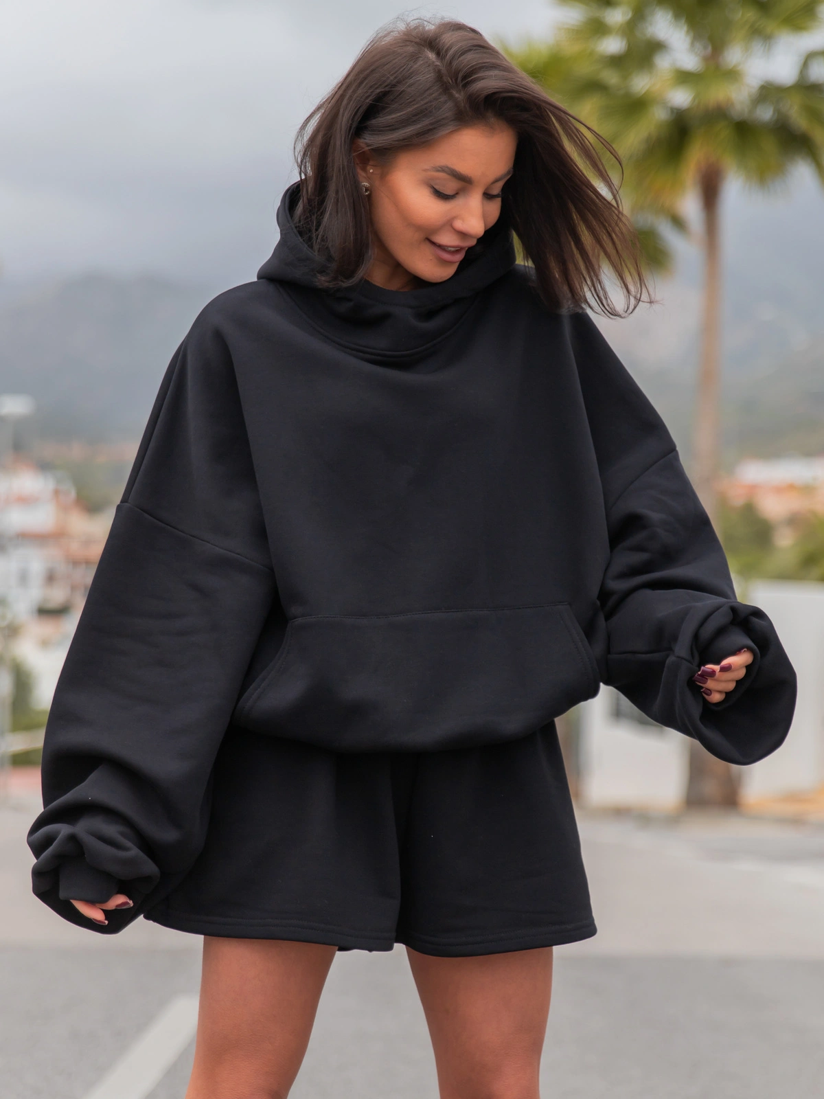Bawełniane dresowe krótkie SPODENKI szorty baggy czarne X52