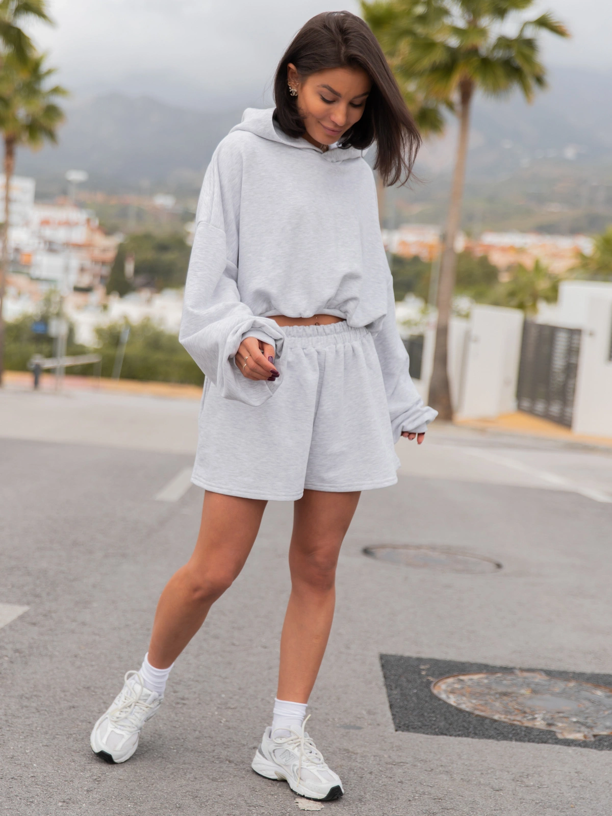 Bawełniane dresowe krótkie SPODENKI szorty baggy szary melanż X52
