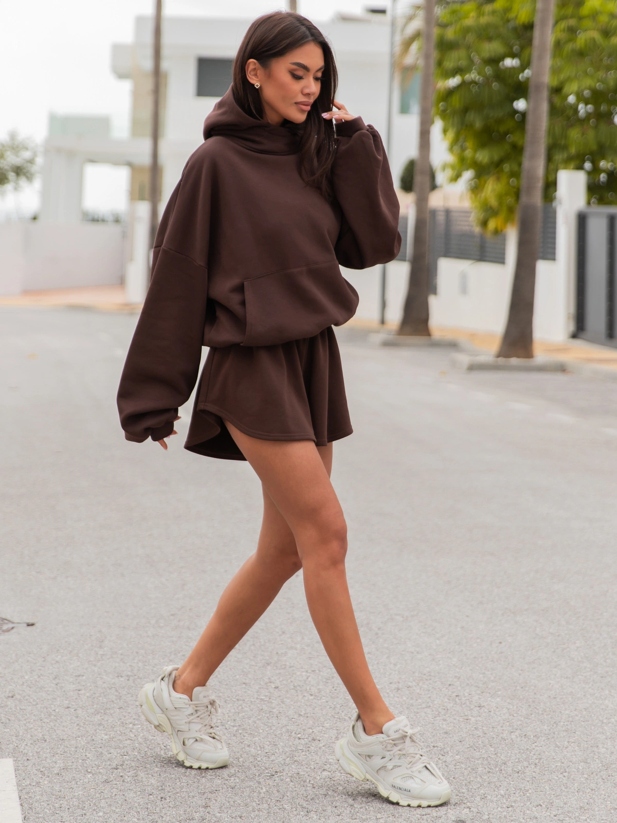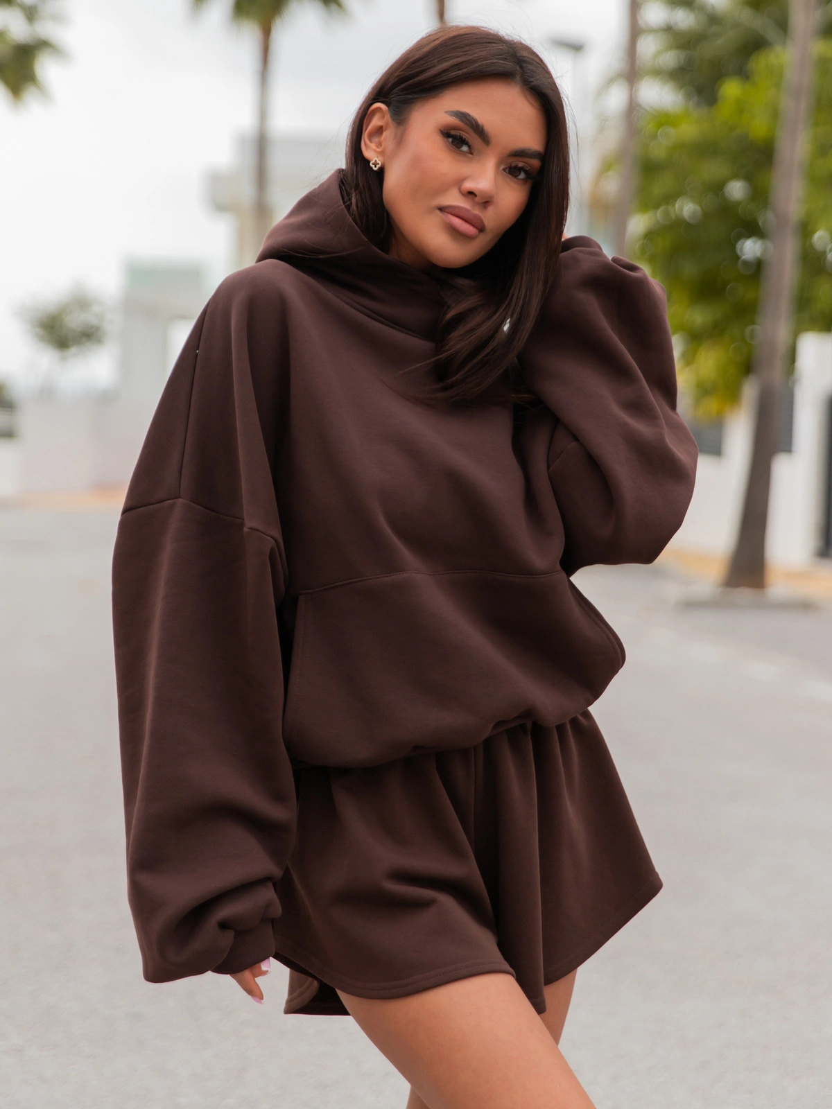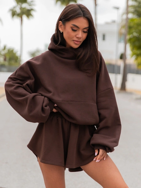 Oversizowa szeroka bluza kangurka z kapturem, ze ściągaczem umożliwiającym bluzowanie. Nasza viralowa bluza. Uszyta z bawełnianej dzianiny dresowej drapanej od wewnątrz, dzięki czemu jest przyjemny w noszeniu.