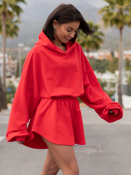 Bawełniany ZESTAW dresowy: bluza z kapturem E1 + asymetryczne szorty X53