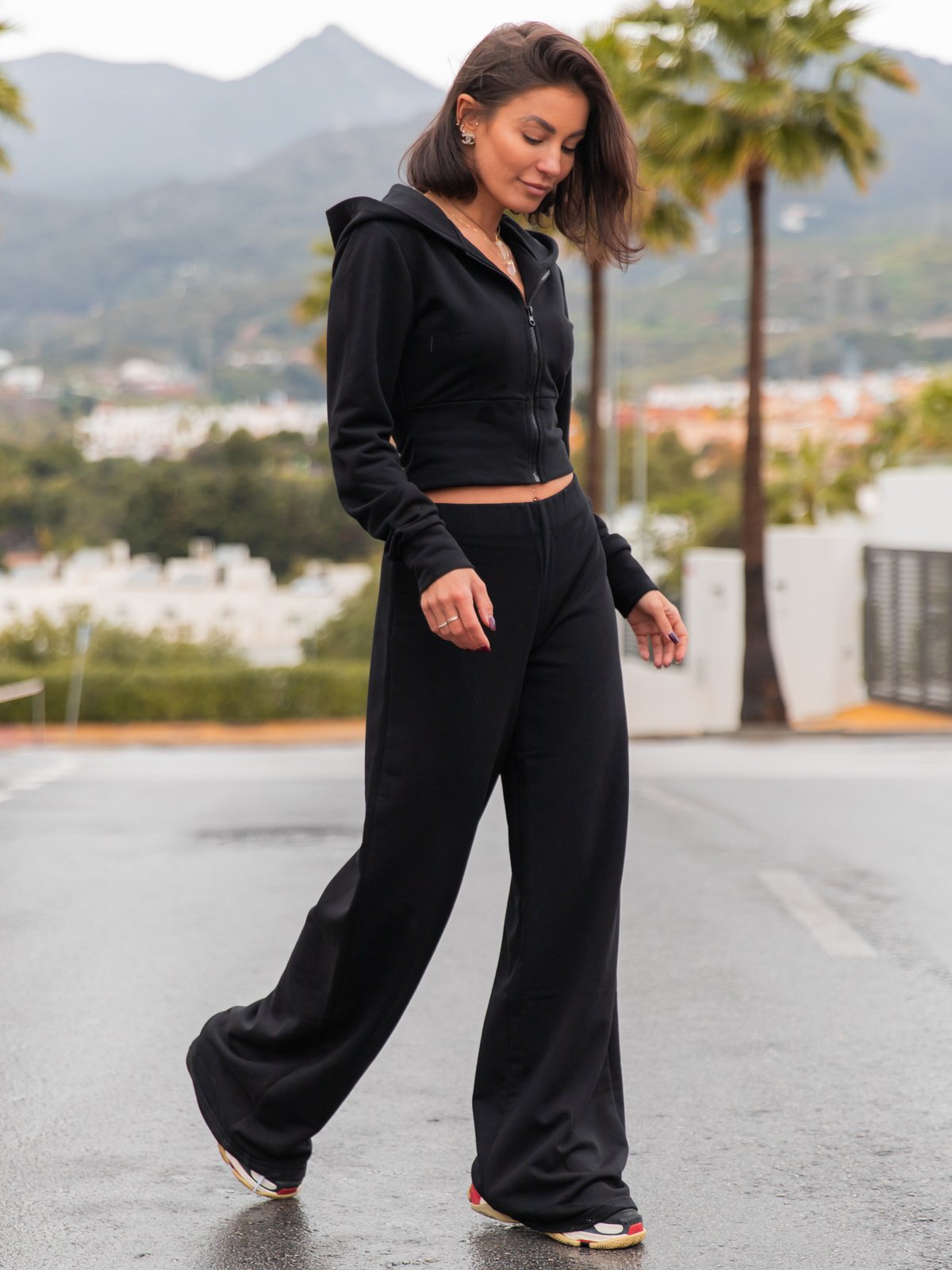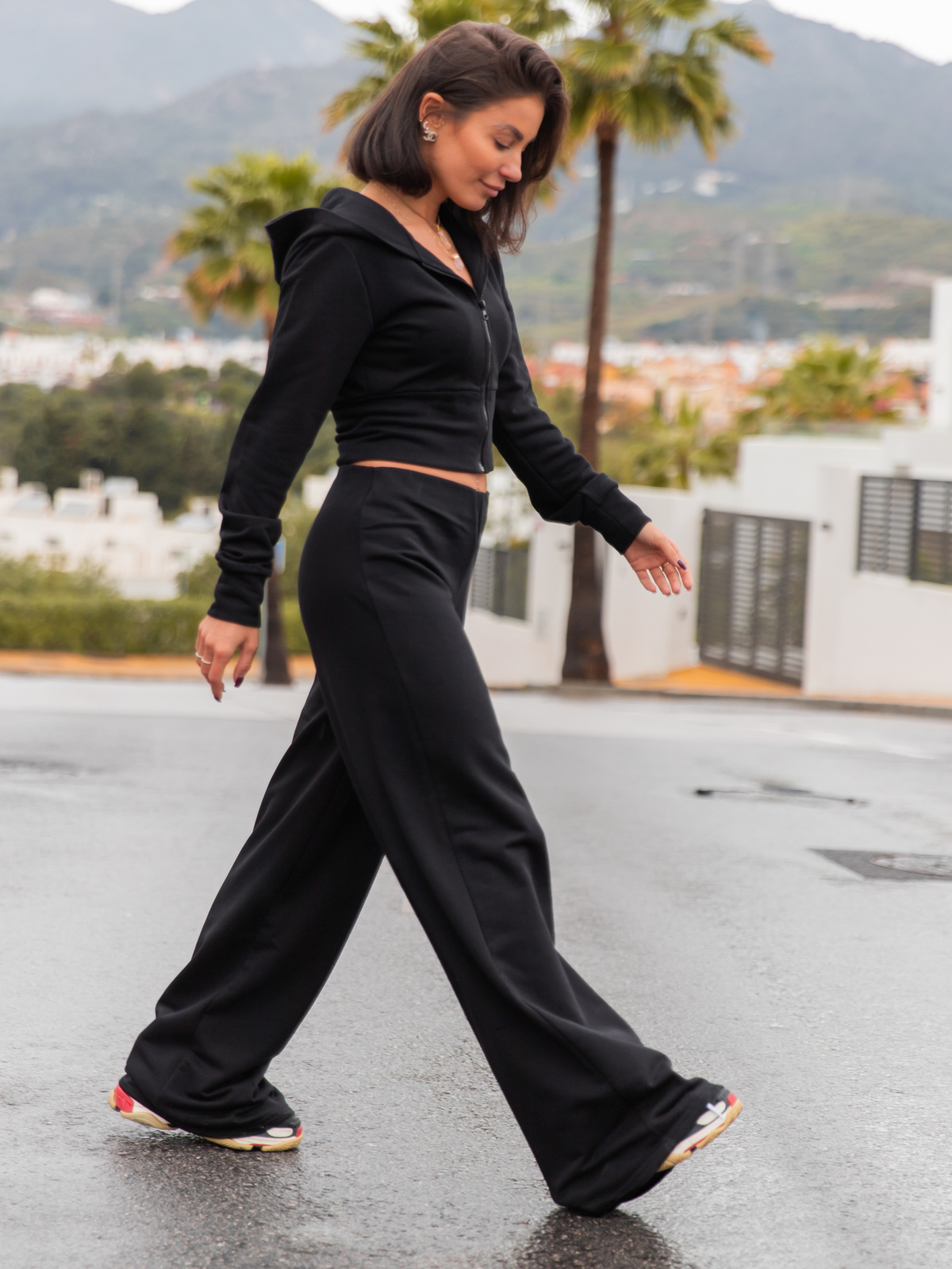 Bawełniane dresowe SPODNIE z szerokimi nogawkami czarne X59 k01