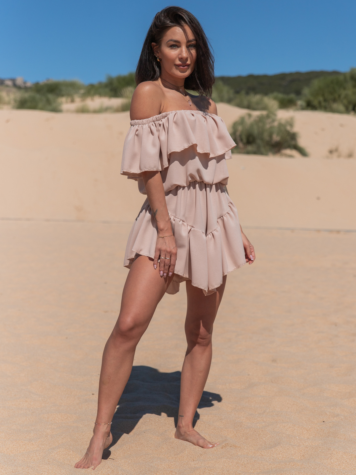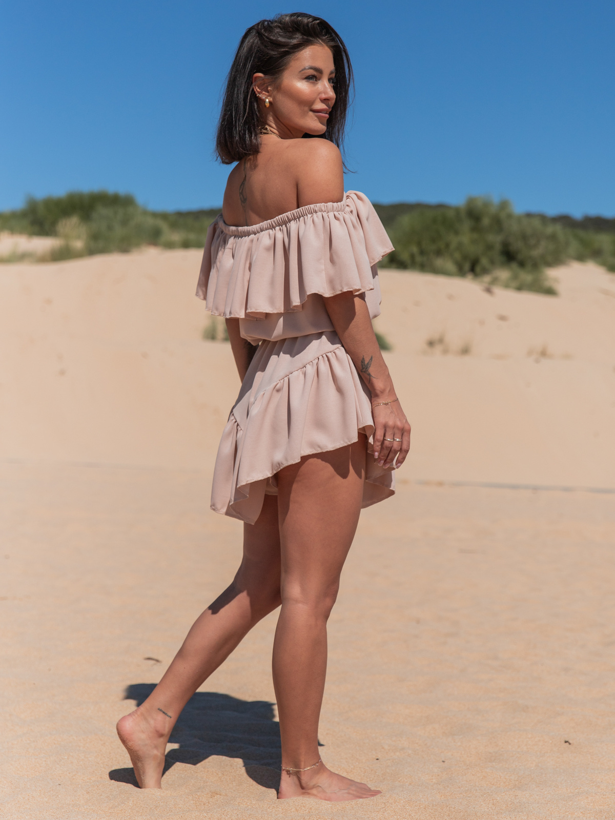 Zwiewna SUKIENKA z wszytymi spodenkami KOMBINEZON w stylu hiszpańskim beżowy X108 k01