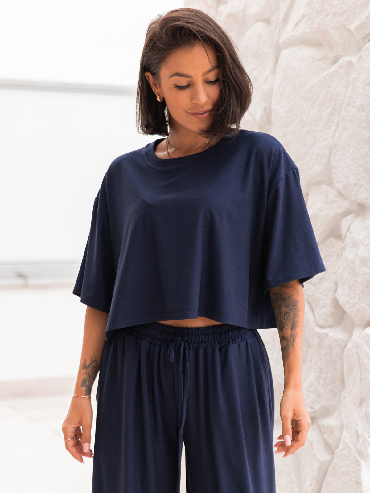 Krótszy fason typu crop – idealny do legginsów, kolarek i spodni z wysokim stanem.