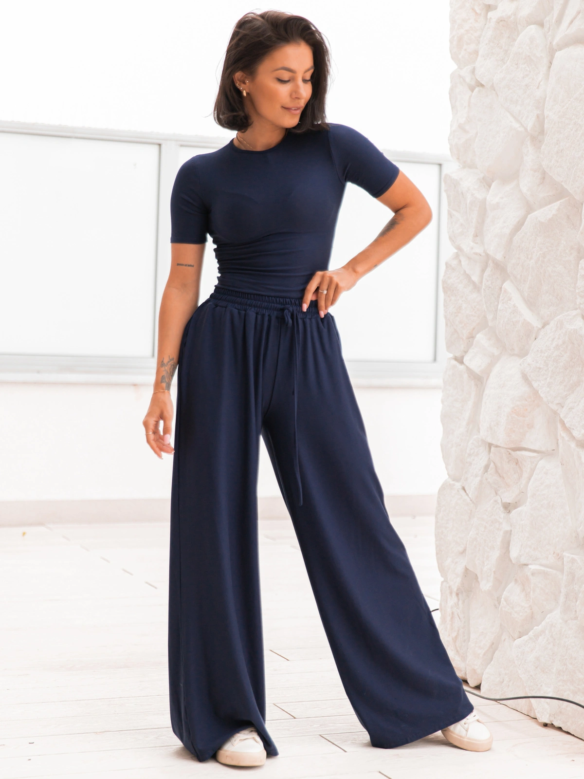 Wiscozowa dopasowana BLUZKA basic z krótkim rękawem navy blue X203 k01