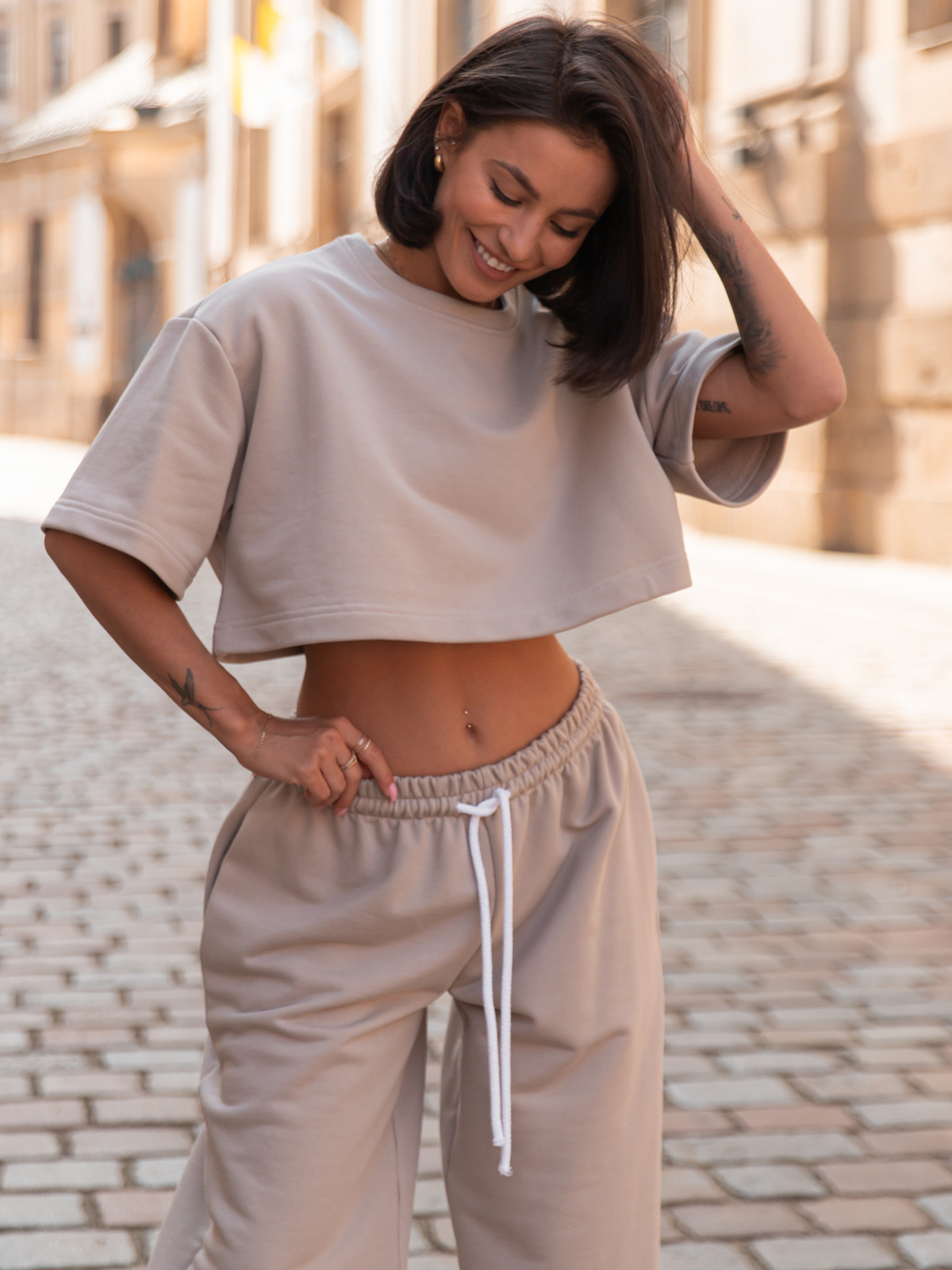 Krótszy fason typu crop – idealny do legginsów, kolarek i spodni z wysokim stanem.
