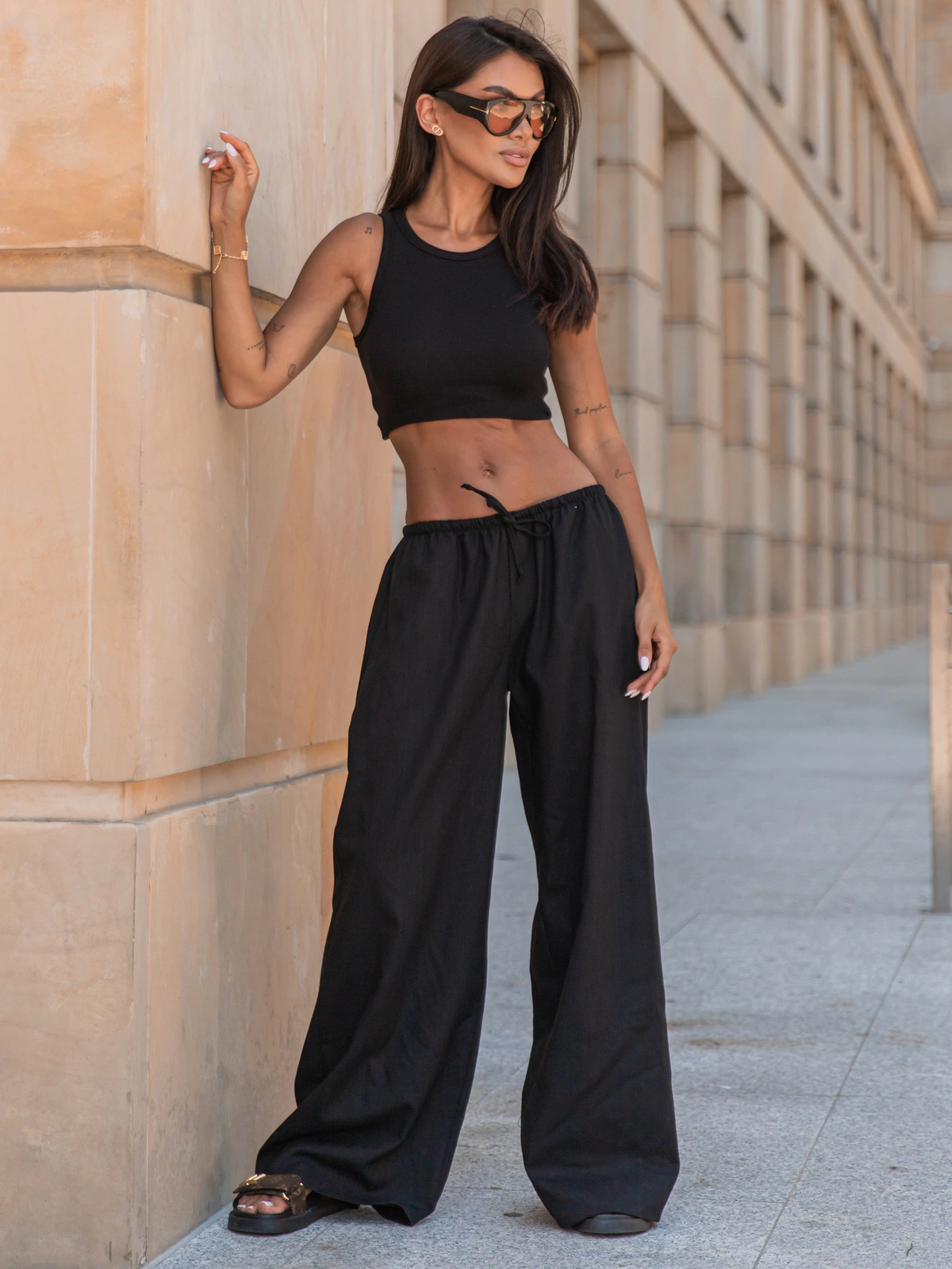 Bawełniana dopasowana BLUZKA basic z prążkowanej dzianiny na ramkach czarna X255