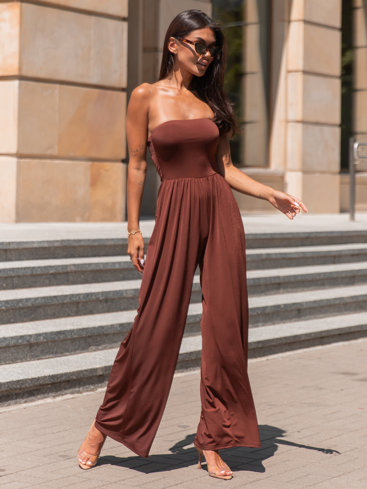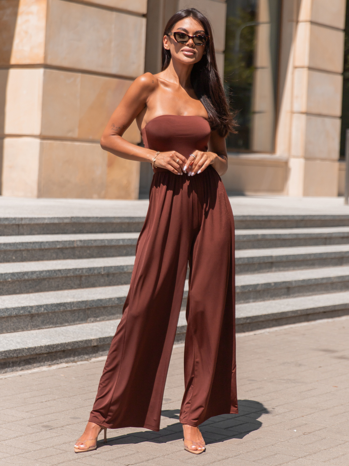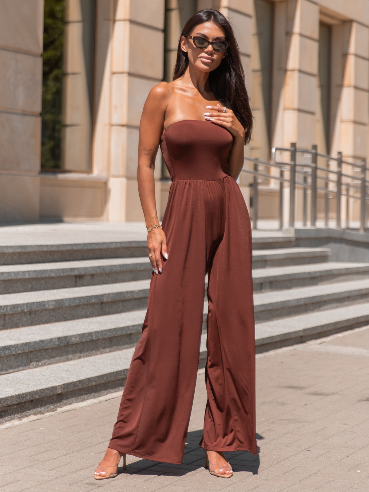 Komfortowy KOMBINEZON gorsetowa góra i luźne spodnie brązowy X256 k01