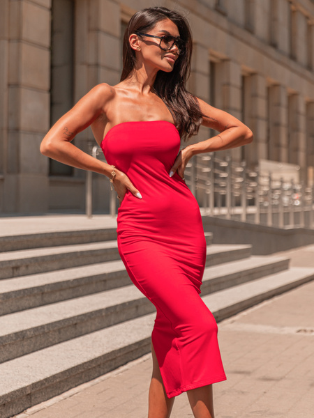 Obcisła SUKIENKA midi gorsetowa z rozporkiem czerwona X260 k01