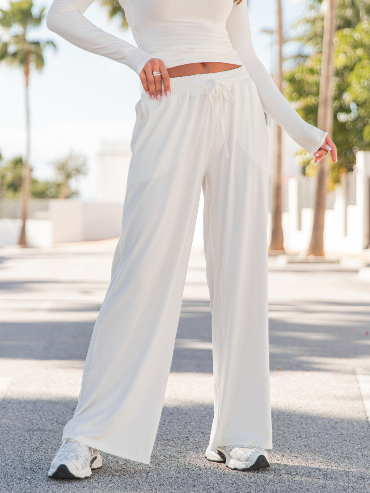 Szerokie SPODNIE z wiskozy z niskim stanem z gumką w pasie ecru X24 (1 szt.)