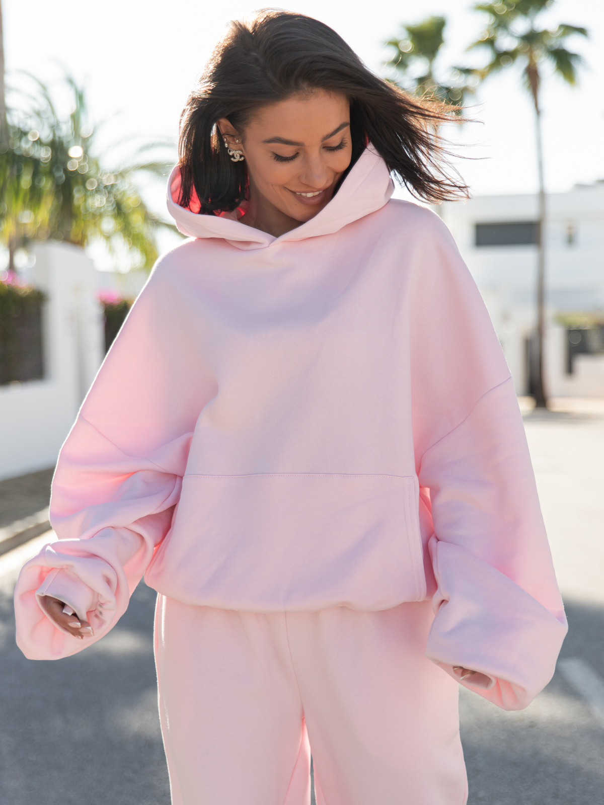Viralowa Dresowa bawełniana BLUZA z kapturem oversize szeroka baby pink E644 (1 szt.)