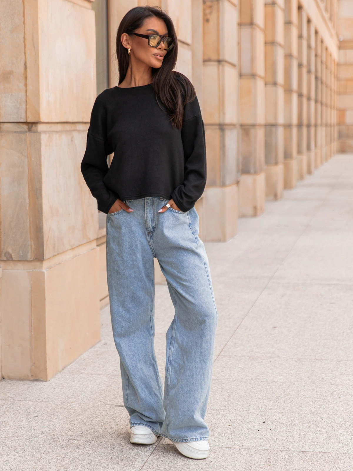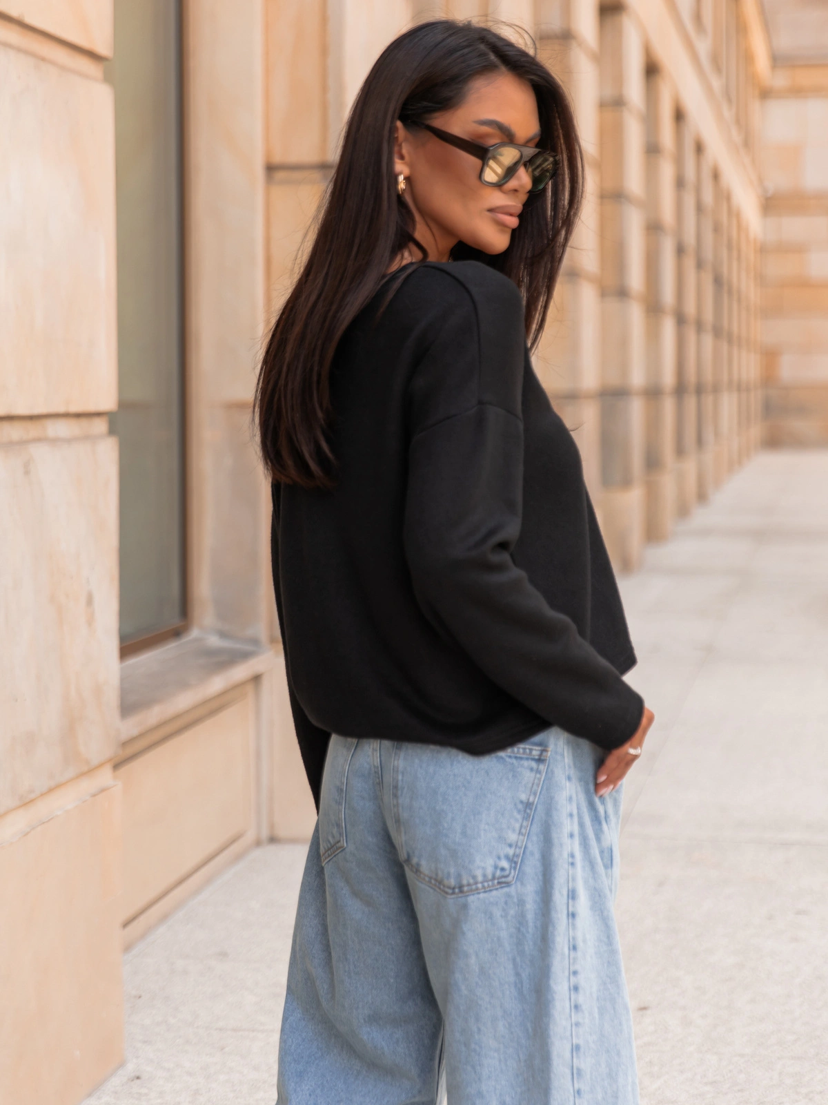 Luźny codzienny SWETER o klasycznym splocie czarny X302
