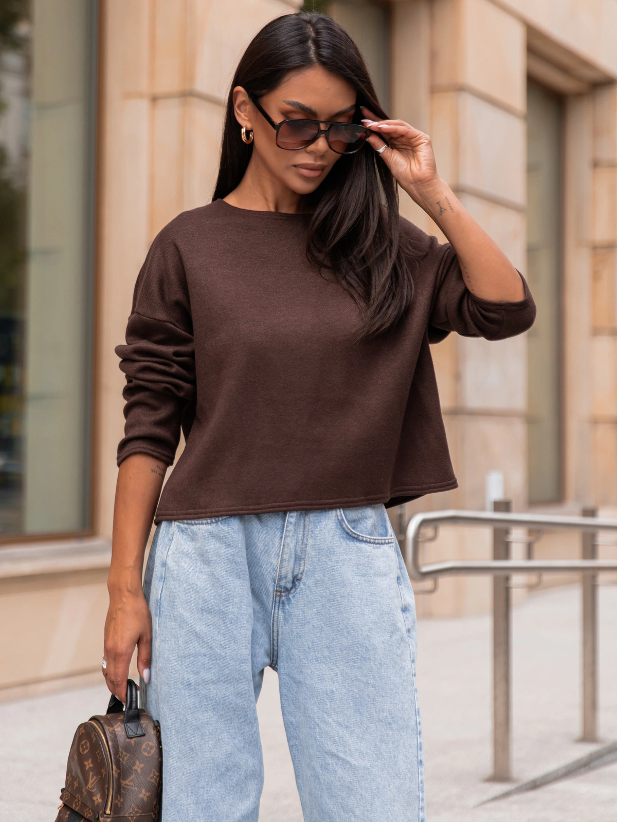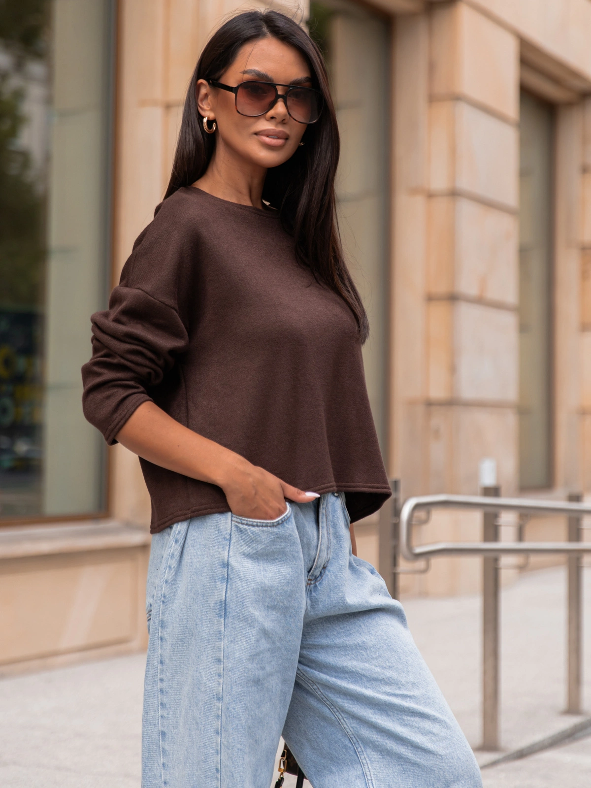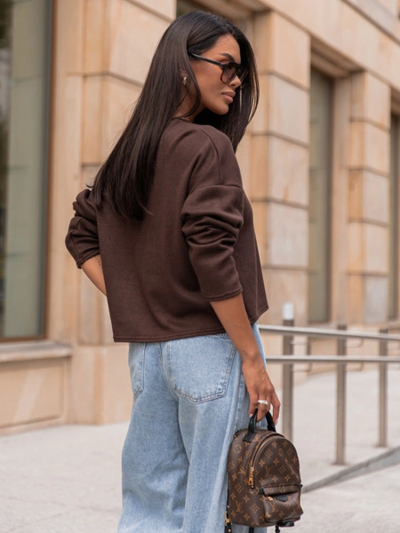 Luźny codzienny SWETER o klasycznym splocie czekoladowy X302