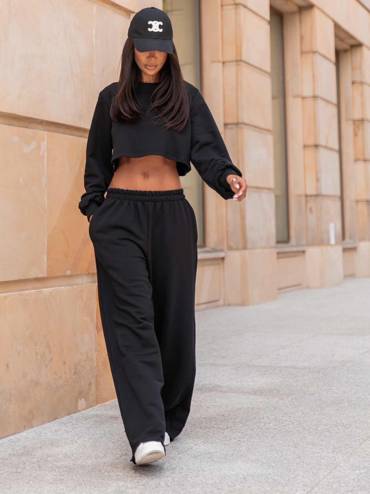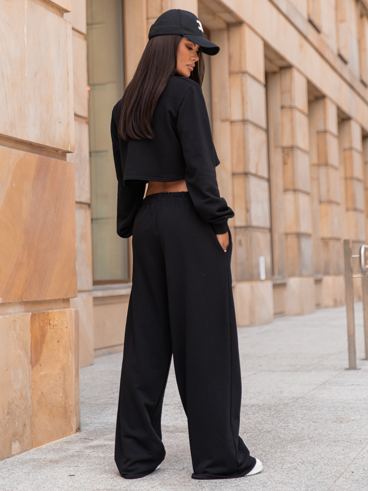 Dresowy bawełniany KOMPLET oversizowa bluzka z długim rękawem i luźne spodnie z szerokimi nagawkami czarny X303 k01