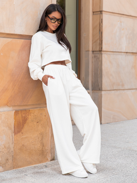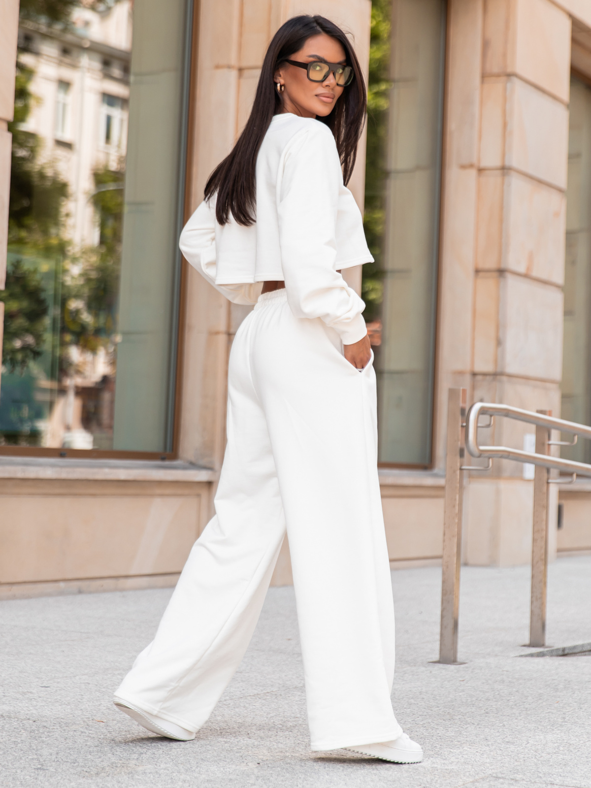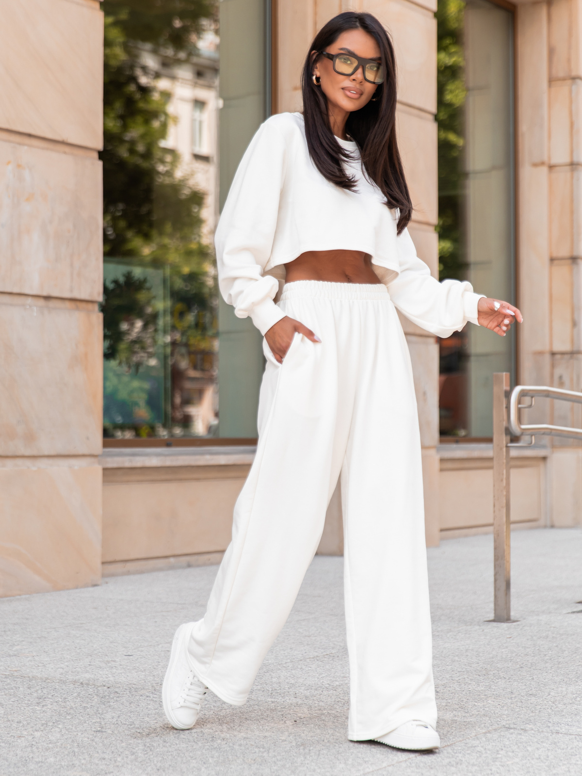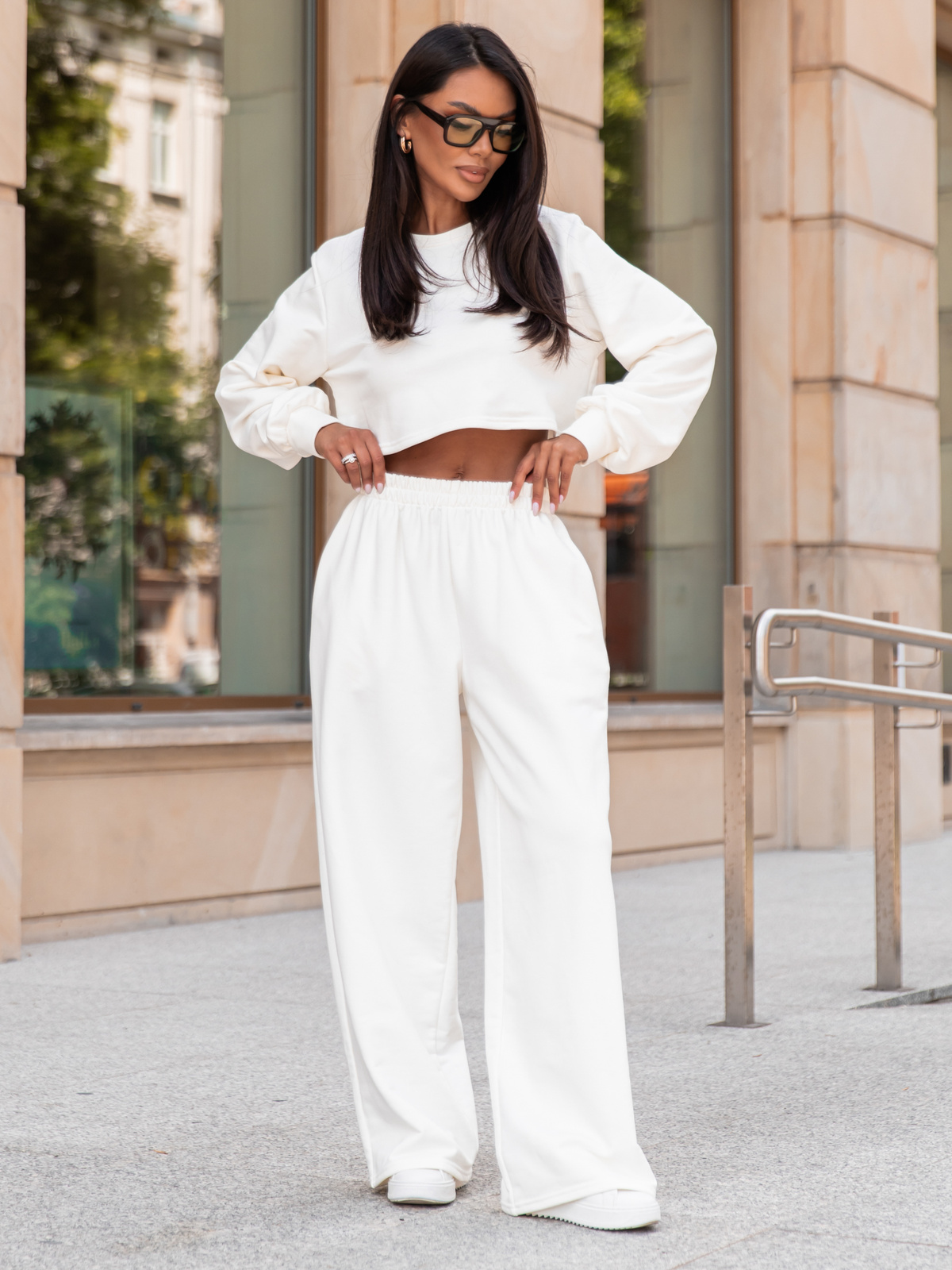 Dresowy bawełniany KOMPLET oversizowa bluzka z długim rękawem i luźne spodnie z szerokimi nagawkami ecru X303 k01