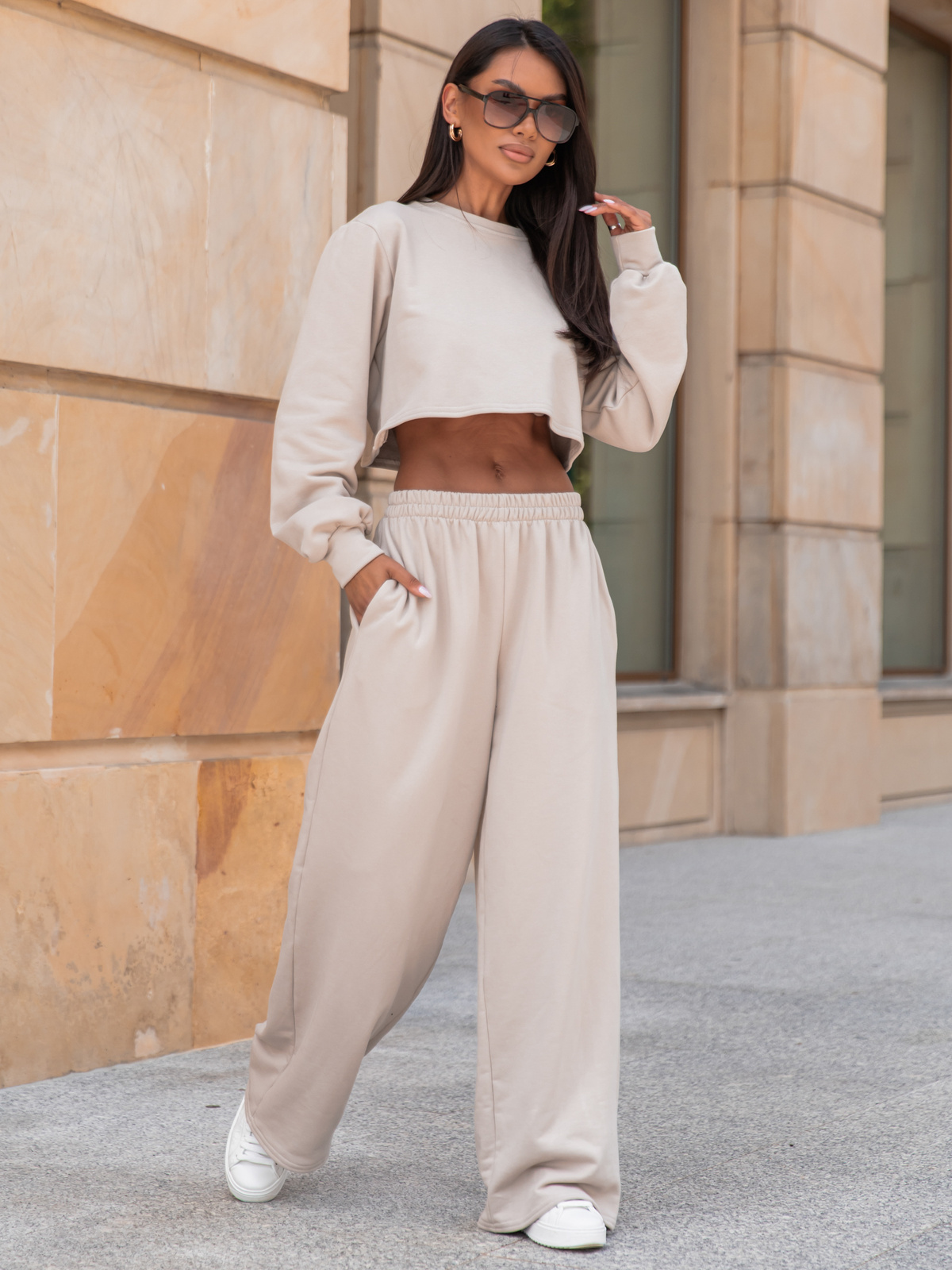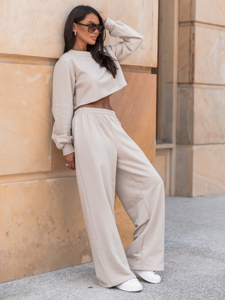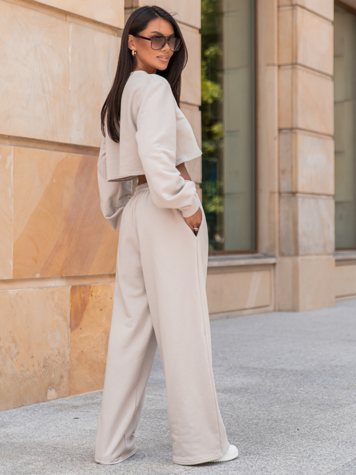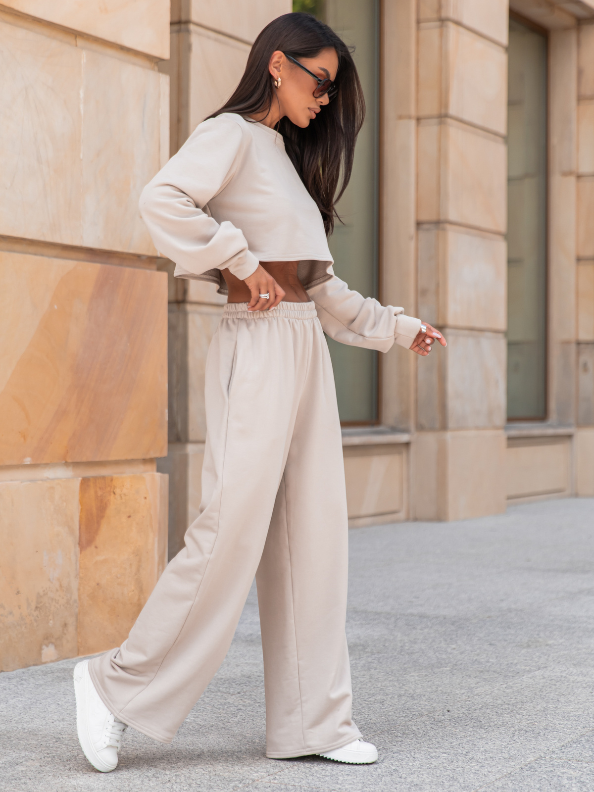 Dresowy bawełniany KOMPLET oversizowa bluzka z długim rękawem i luźne spodnie z szerokimi nagawkami stone X303 k01