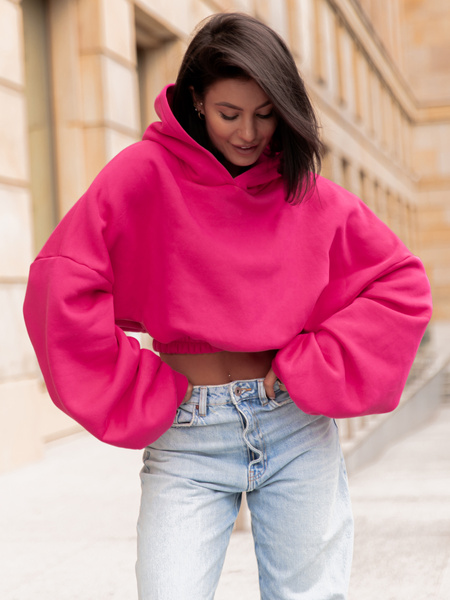 Dresowa bawełniana BLUZA kangurka z kapturem o krótszym kroju bluzowana różowa X304