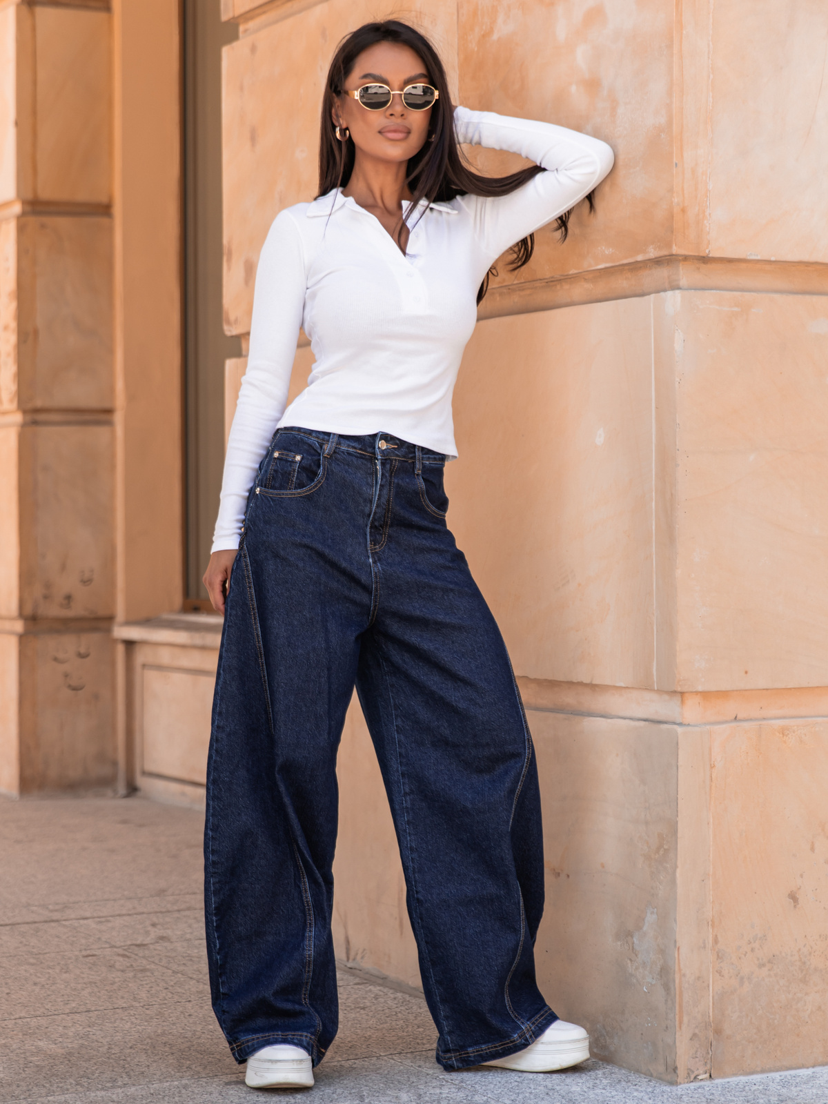Dopasowana bluzka z długim rękawem. Z przodu znajduje się zapięcie na guziki, które pozwala regulować głębokość dekoltu – możesz nosić go bardziej klasycznie lub odważniej, w zależności od okazji. Klasyczny kołnierzyk dodaje całości elegancji i modowego sznytu, tworząc wyjątkowe połączenie wygody z nutą szyku.