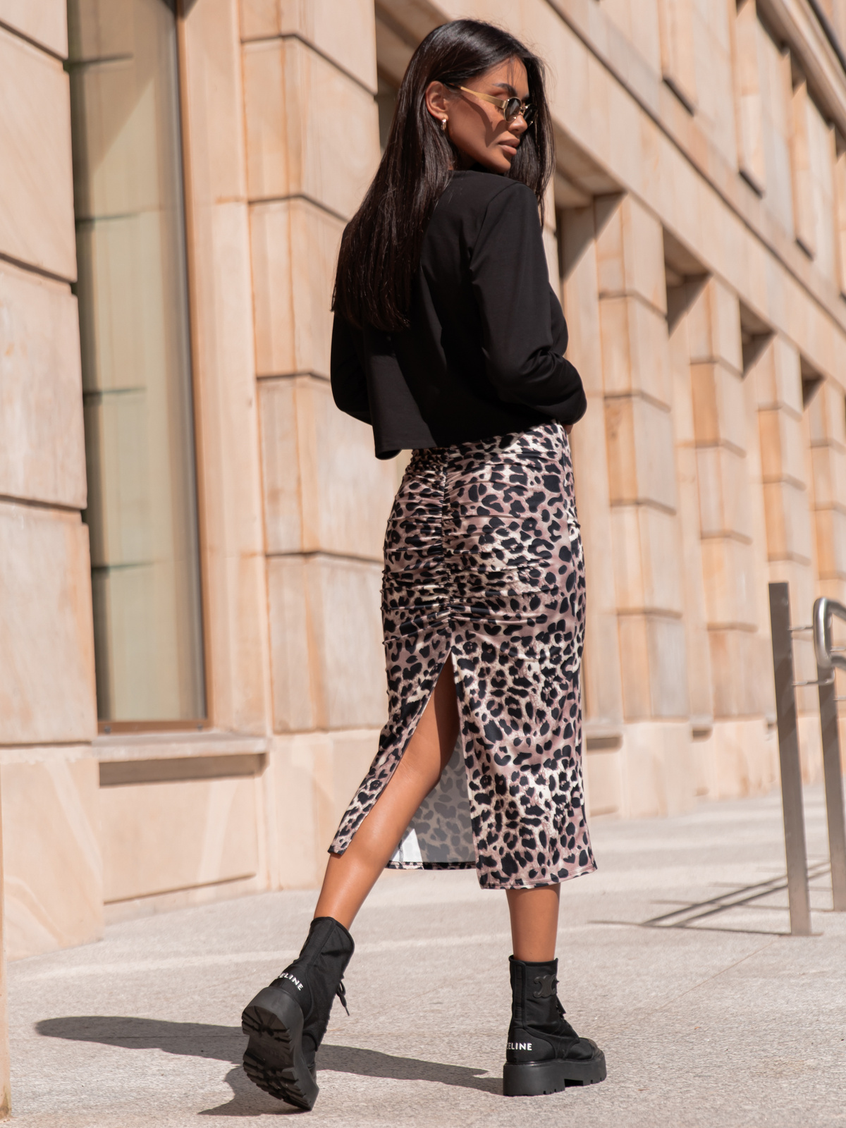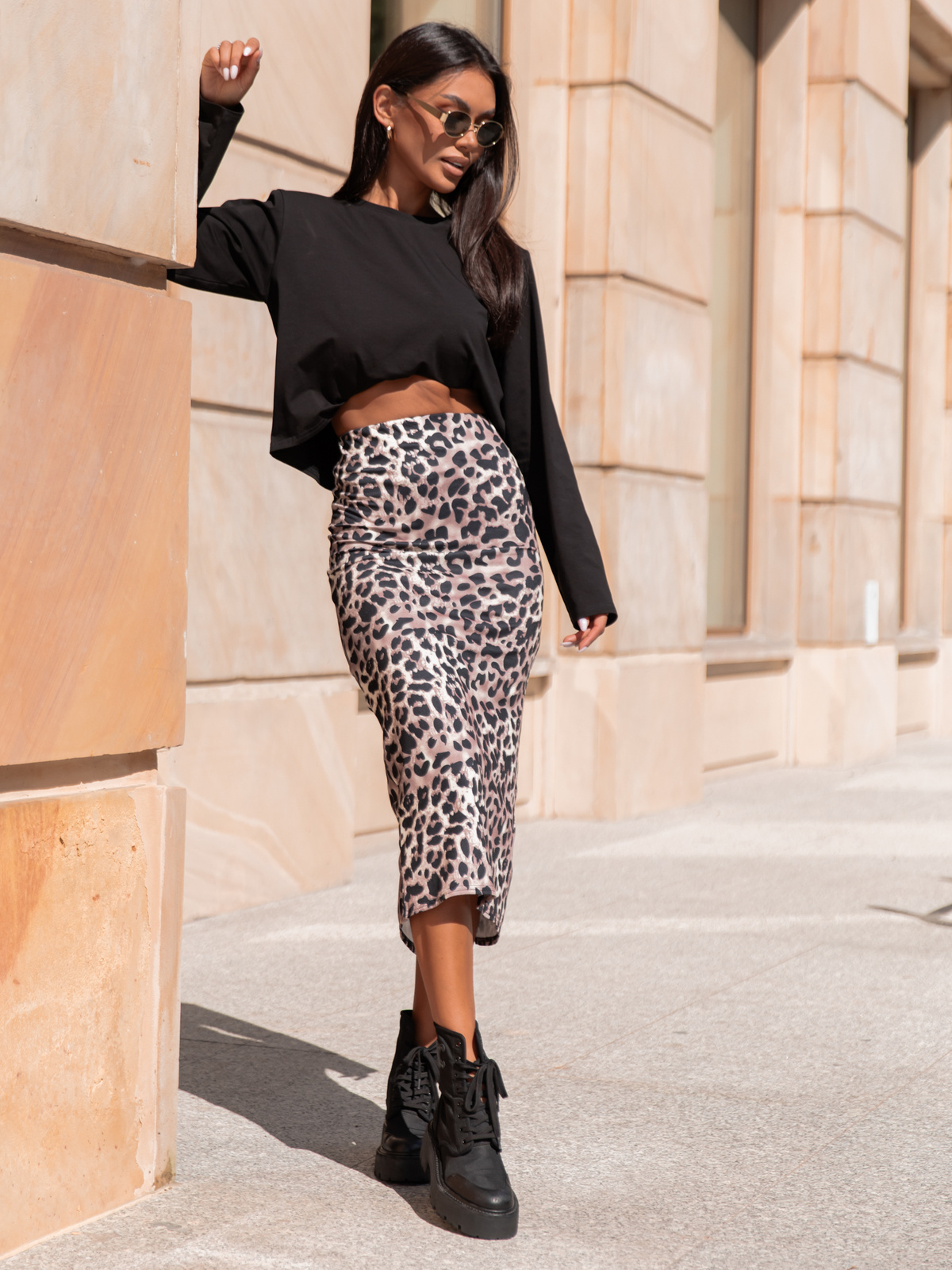 Obcisła midi SPÓDNICA z efektem push up z gładkiej dzianiny panterka X310