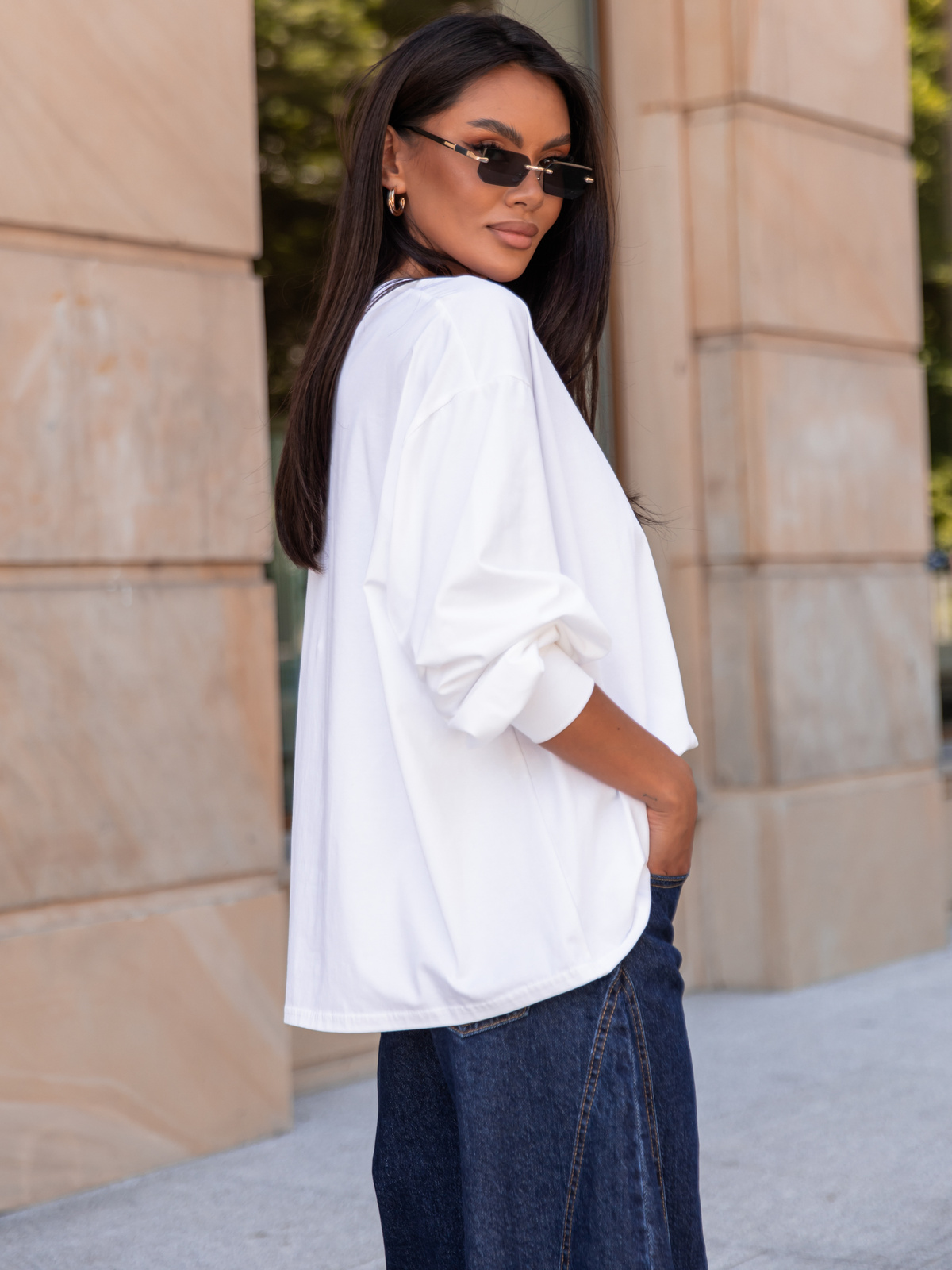 Oversizowy T-SHIRT bluzka z długim rękawem z bawełny biały X313