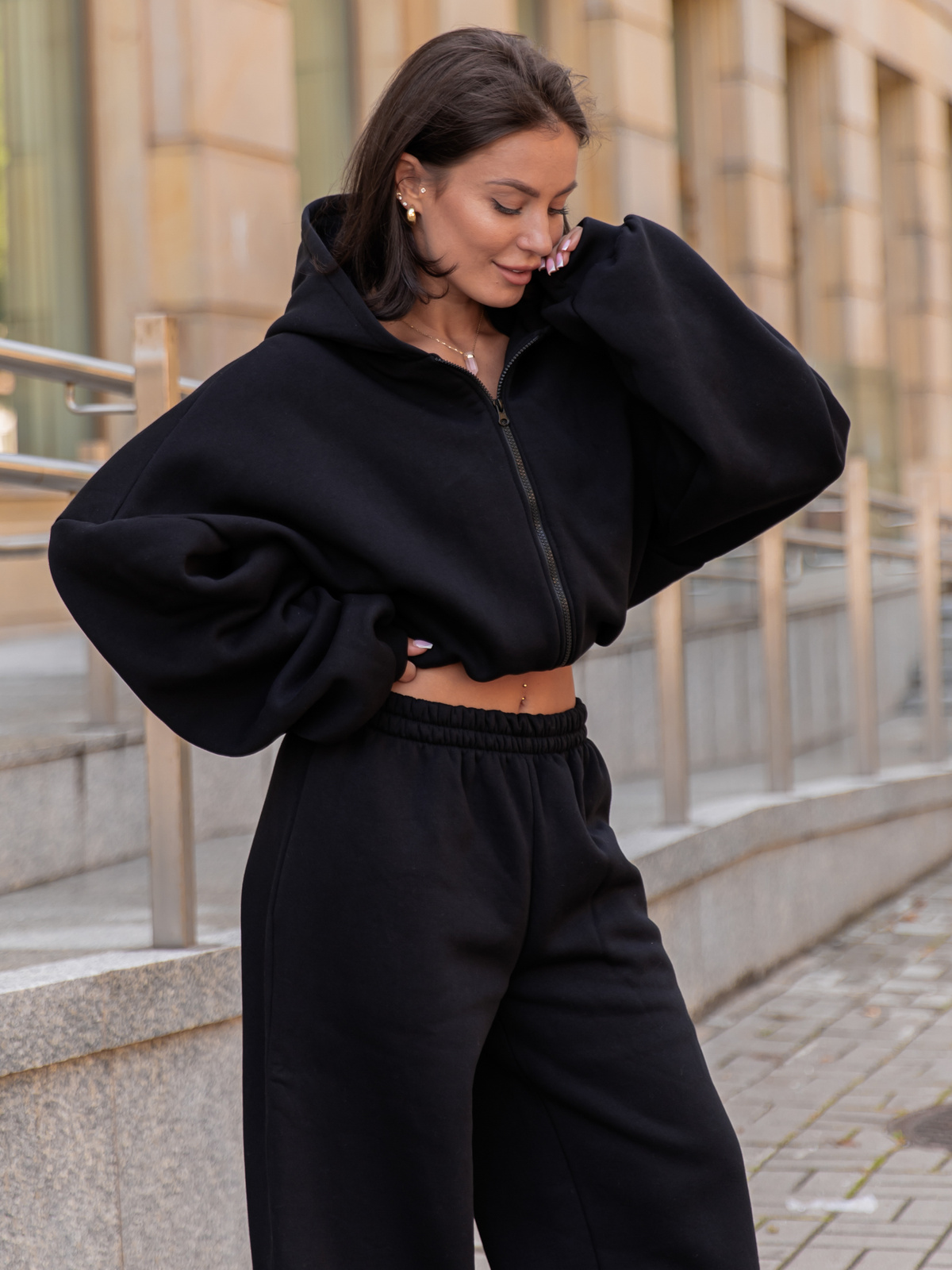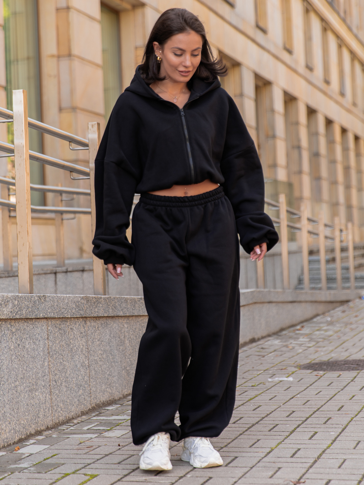 ZESTAW dresowy: krótka BLUZA kangurka z kapturem na zamek X315 + SPODNIE z szerokimi nogawkami X31