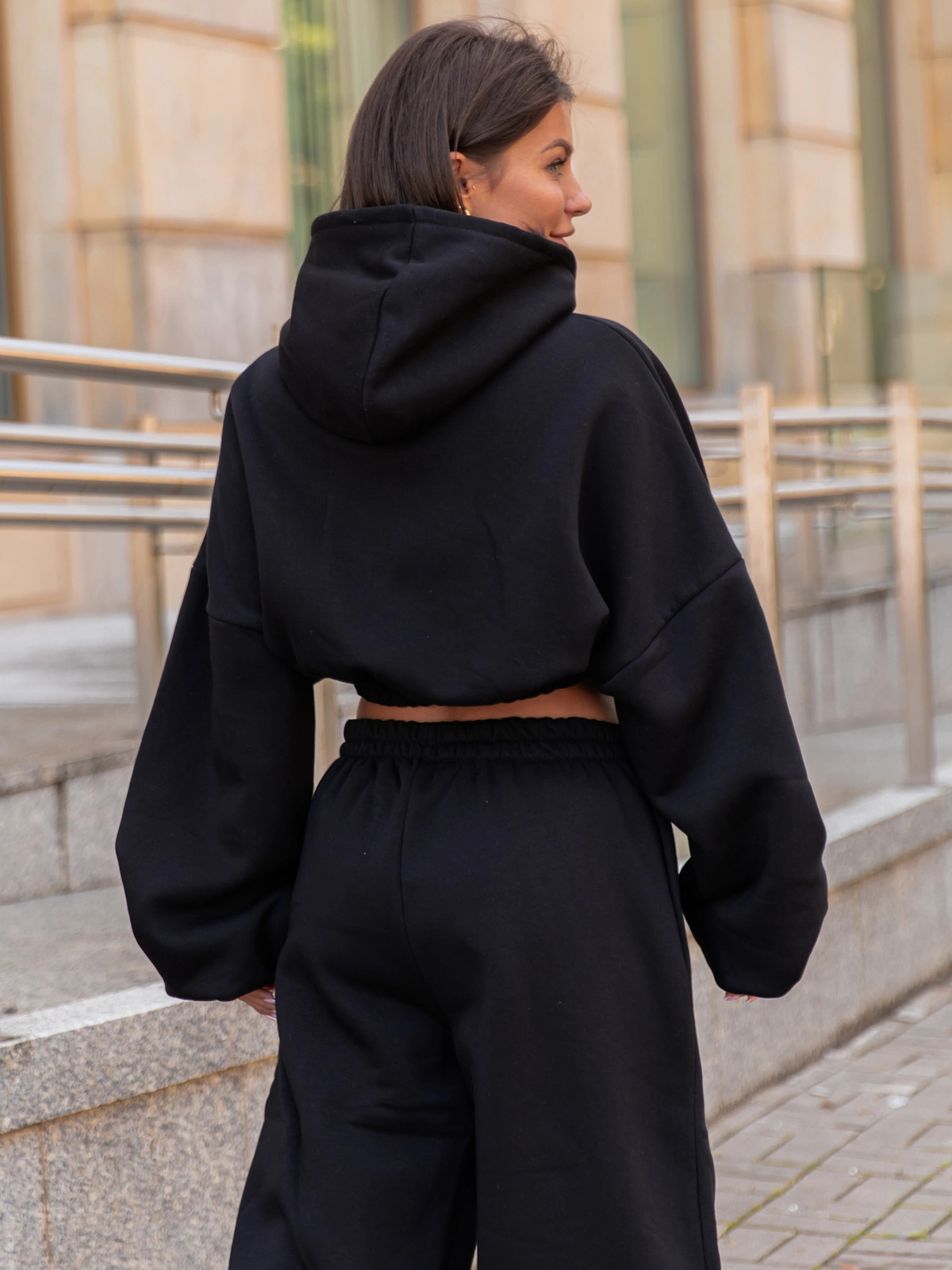 Dresowa bawełniana BLUZA kangurka z kapturem o krótszym kroju bluzowana czarna X304