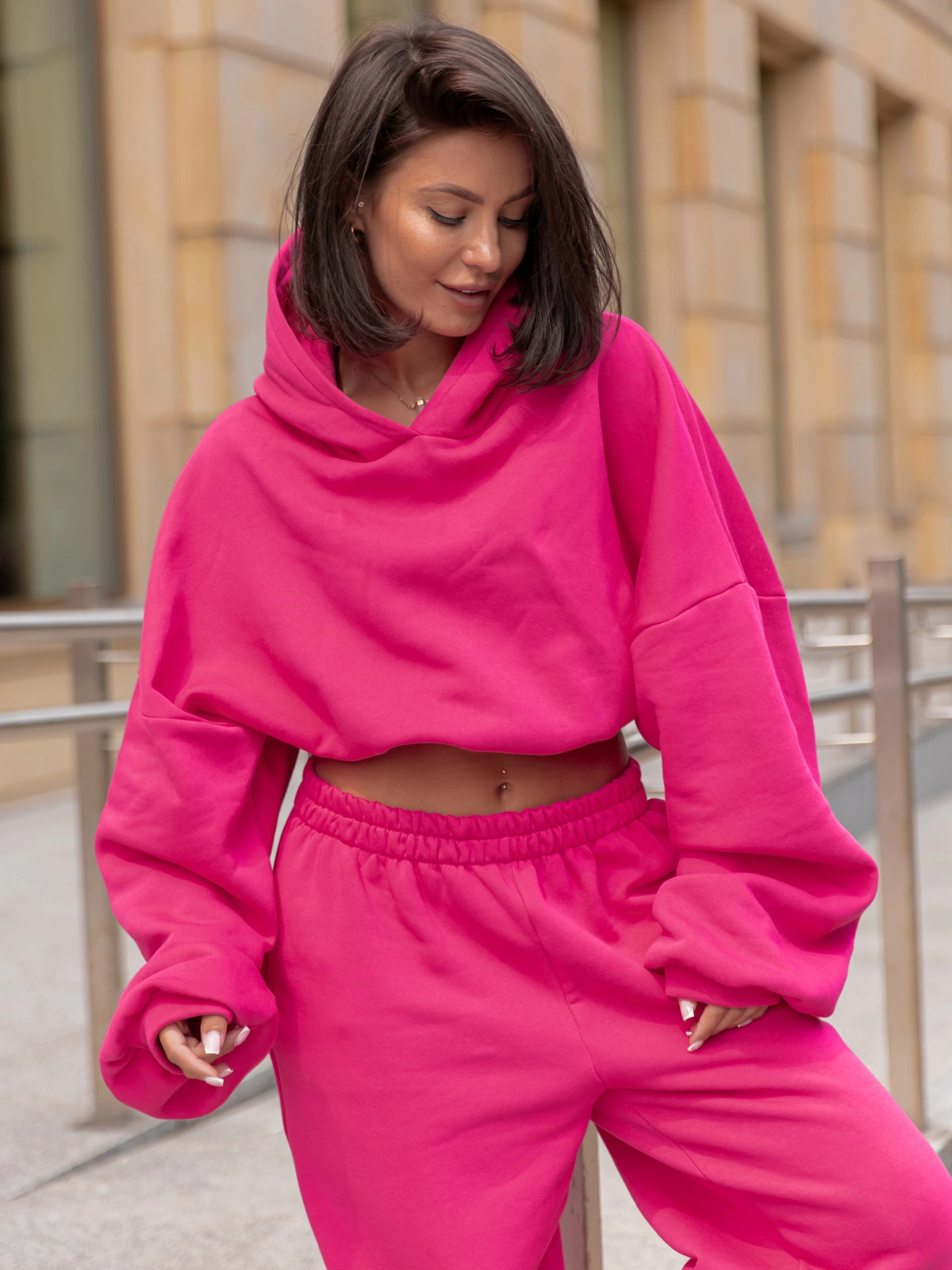 Dresowy bawełniany ZESTAW: krótka BLUZA kangurka z kapturem X304 + SPODNIE baggy E643