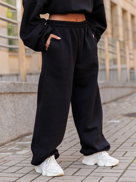 Opinie o Dresowe bawełniane SPODNIE baggy czarne E643