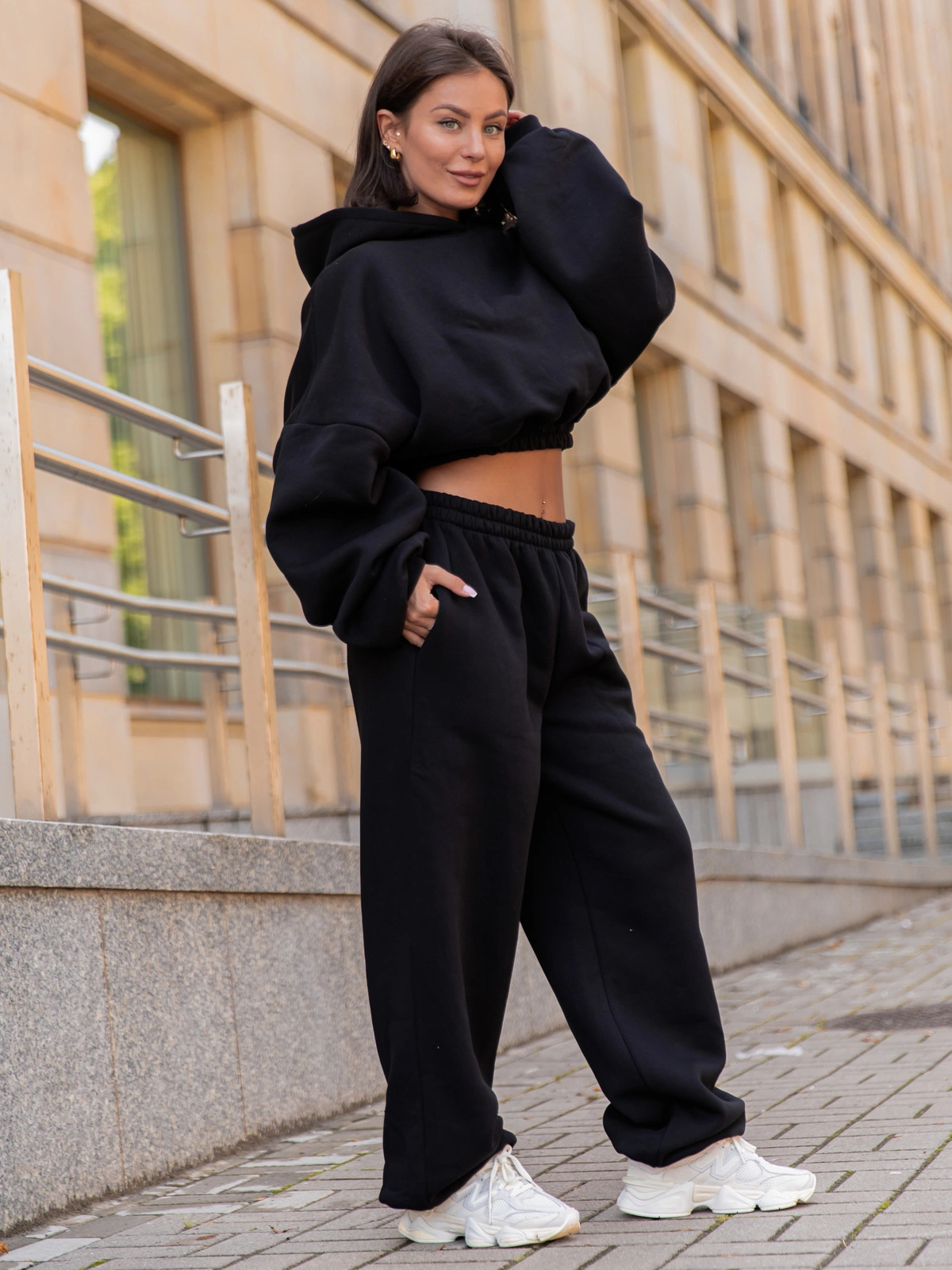 Stonowane kolory i prosty krój sprawiają, że spodnie można łatwo łączyć z różnymi elementami garderoby – od casualowych T-shirtów i bluz, po bardziej eleganckie dodatki, tworząc efekt sportowej elegancji. Delikatne przeszycia oraz praktyczne kieszenie podkreślają uniwersalny charakter spodni, dodając im jednocześnie subtelnego wyrazu i funkcjonalności.