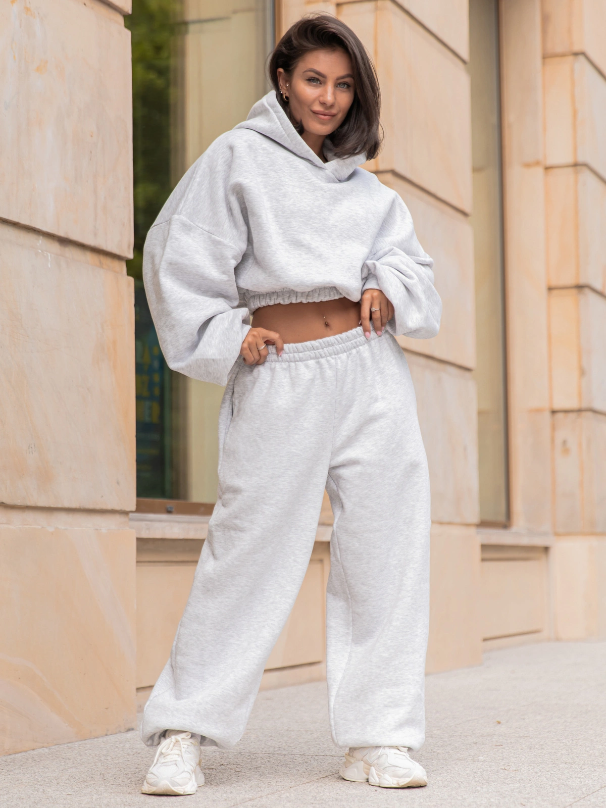 Stonowane kolory i prosty krój sprawiają, że spodnie można łatwo łączyć z różnymi elementami garderoby – od casualowych T-shirtów i bluz, po bardziej eleganckie dodatki, tworząc efekt sportowej elegancji. Delikatne przeszycia oraz praktyczne kieszenie podkreślają uniwersalny charakter spodni, dodając im jednocześnie subtelnego wyrazu i funkcjonalności.