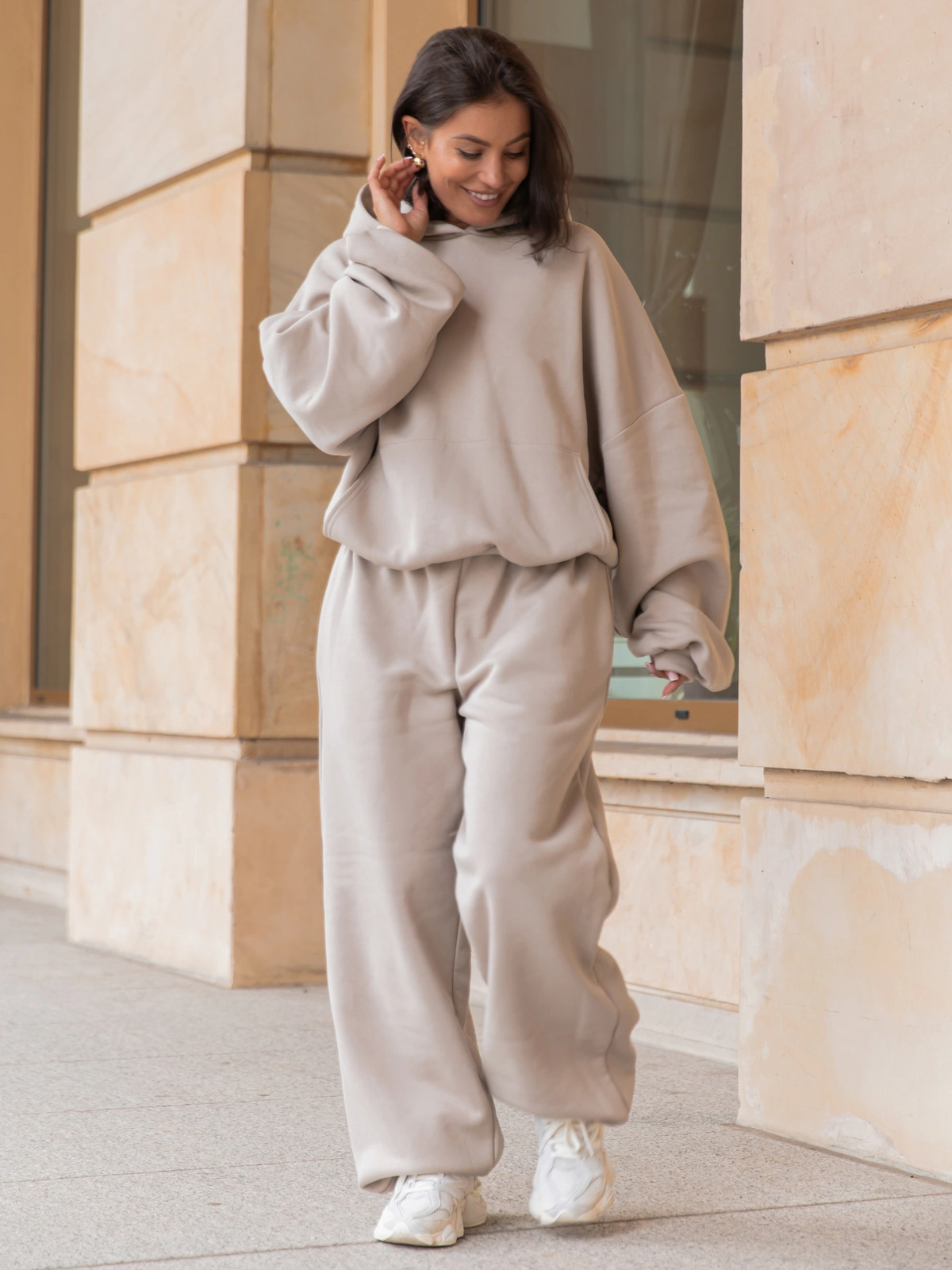 Uszyte z wysokiej jakości bawełnianej dzianiny dresowej drapanej od wewnątrz, materiał ten jest wyjątkowo miękki i przyjemny dla skóry. Tkanina premium od polskiego producenta otula ciepłem, a jednocześnie pozwala skórze oddychać, dzięki czemu spodnie sprawdzą się doskonale w każdej porze roku – od chłodniejszych dni po cieplejsze popołudnia.
