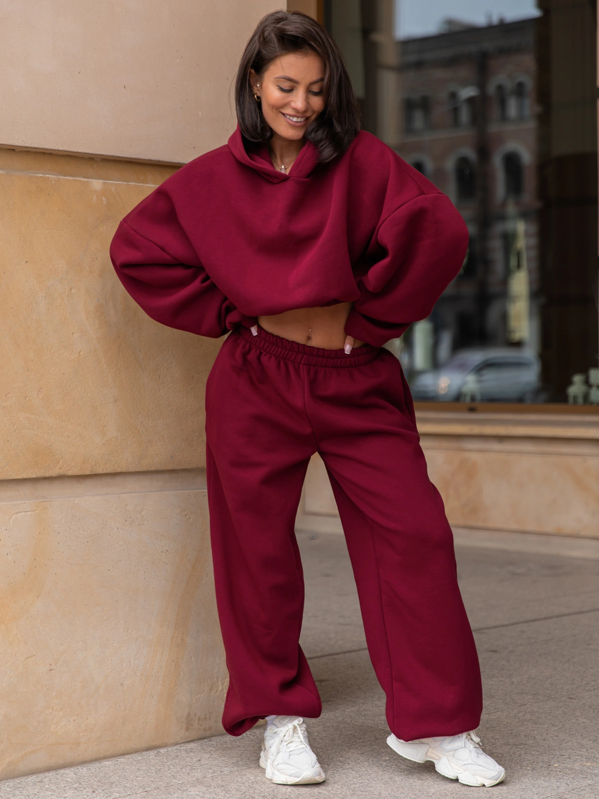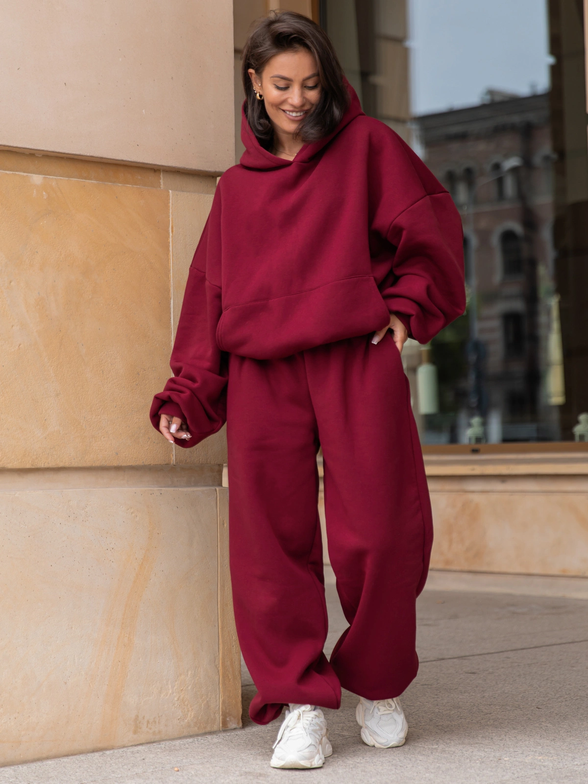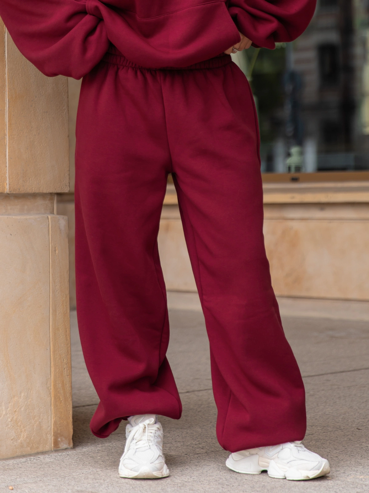Opinie o Dresowe bawełniane SPODNIE baggy bordowe E643