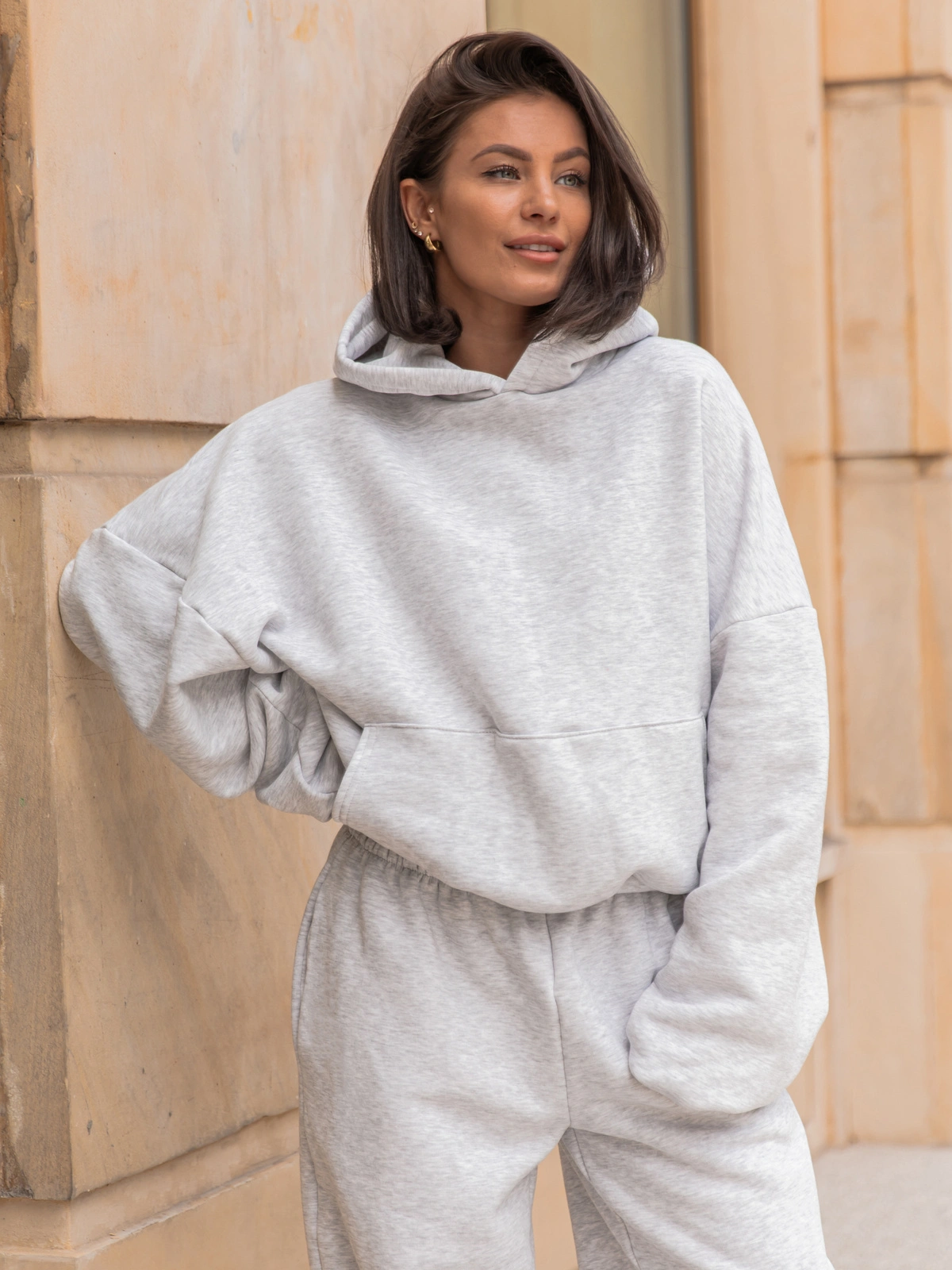 Oversizowa szeroka bluza kangurka z kapturem