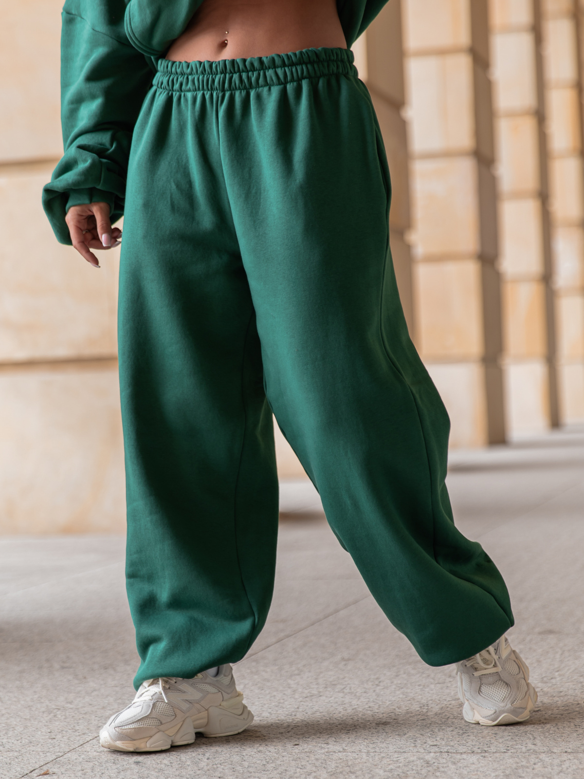 Kompletny zestaw uszyty z wysokiej jakości bawełnianej dzianiny dresowej drapanej od wewnątrz, która jest wyjątkowo przyjemna w noszeniu i otula ciepłem. W skład kompletu wchodzi nasza viralowa, oversize’owa bluza kangurka z kapturem oraz luźne spodnie baggy z gumką w pasie i na nogawkach.