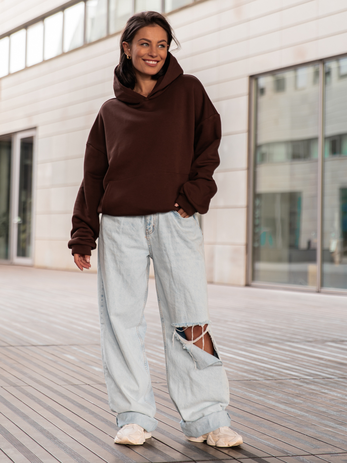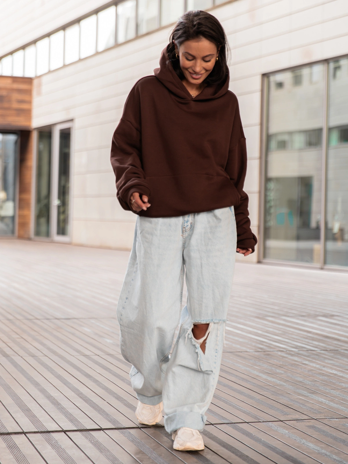 Klasyczna bluza typu kangurka z kapturem to must-have w każdej modnej garderobie. Jej luźny fason doskonale wpisuje się w aktualne trendy streetwearowe, zapewniając nie tylko wyjątkowy styl, ale przede wszystkim wygodę na najwyższym poziomie. Bluza została wyposażona w praktyczny ściągacz na dole, który pozwala na efektowne bluzowanie i dopasowanie do sylwetki według indywidualnych preferencji.