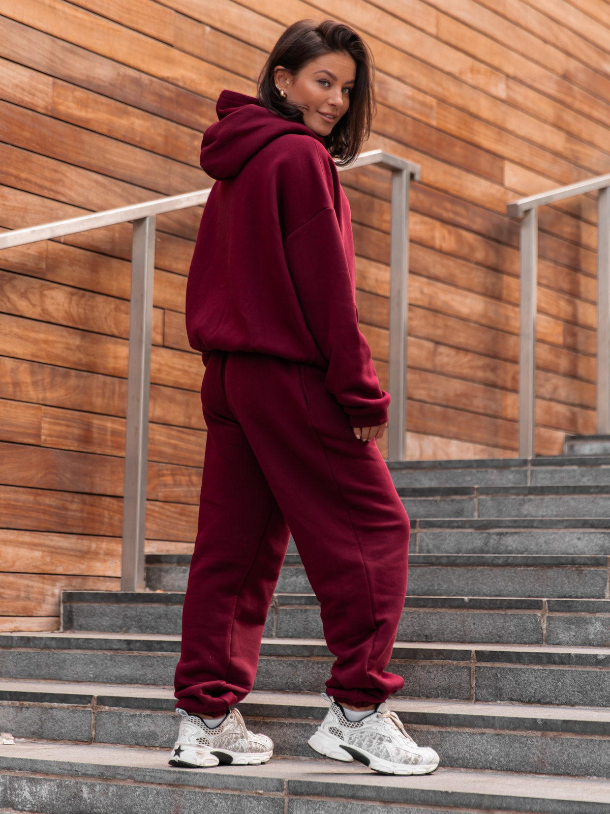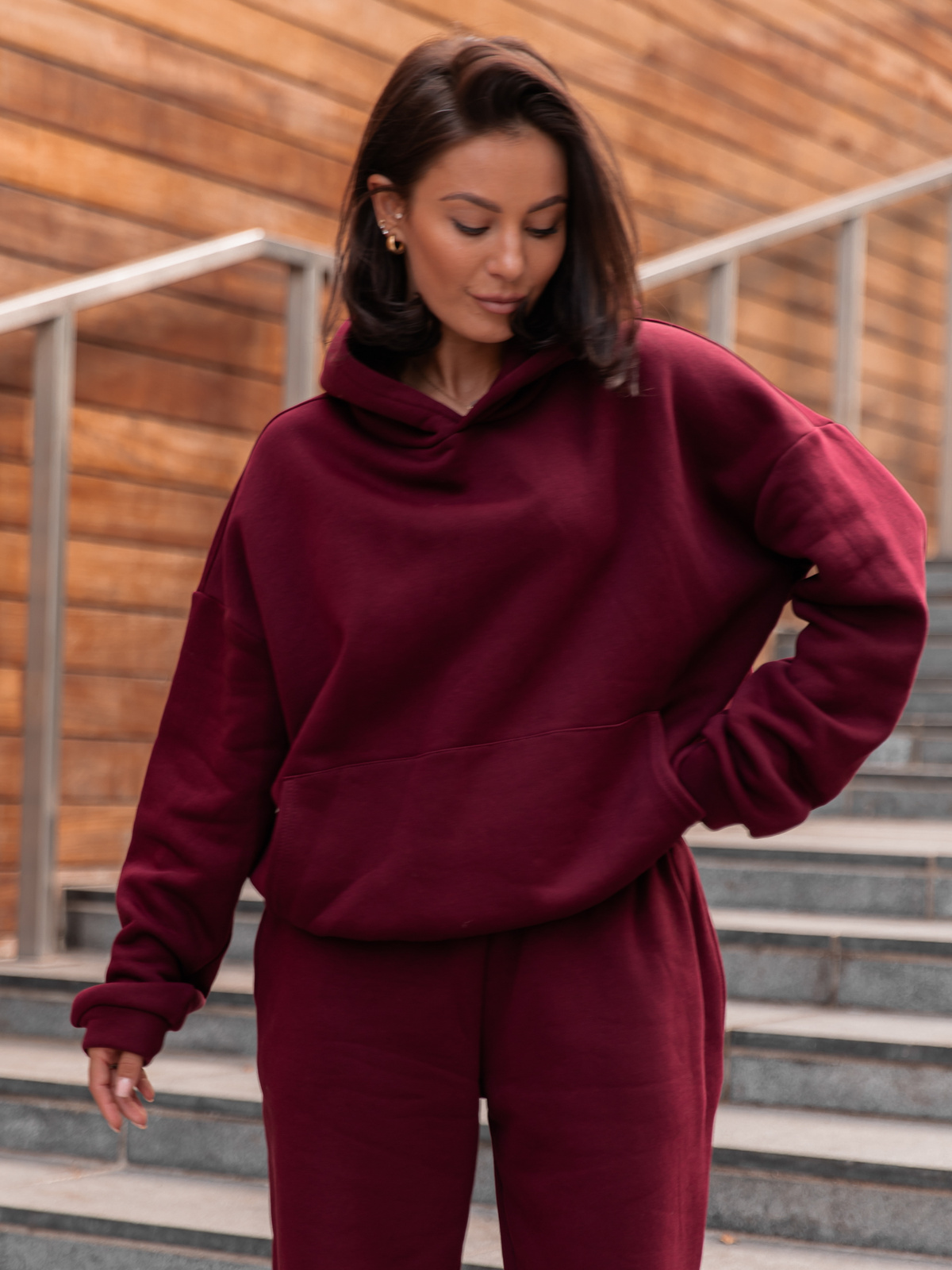 Dresowa bawełniana BLUZA z kapturem kangurka o klasycznym kroju bordowa X350