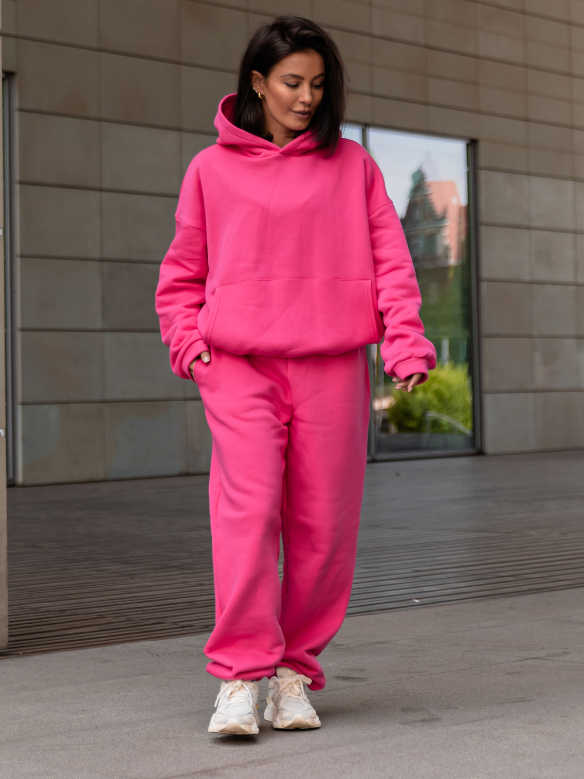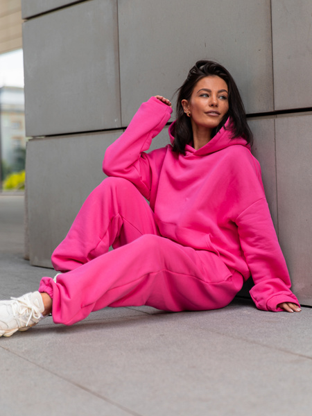 Dresowa bawełniana BLUZA z kapturem kangurka o klasycznym kroju różowa X350