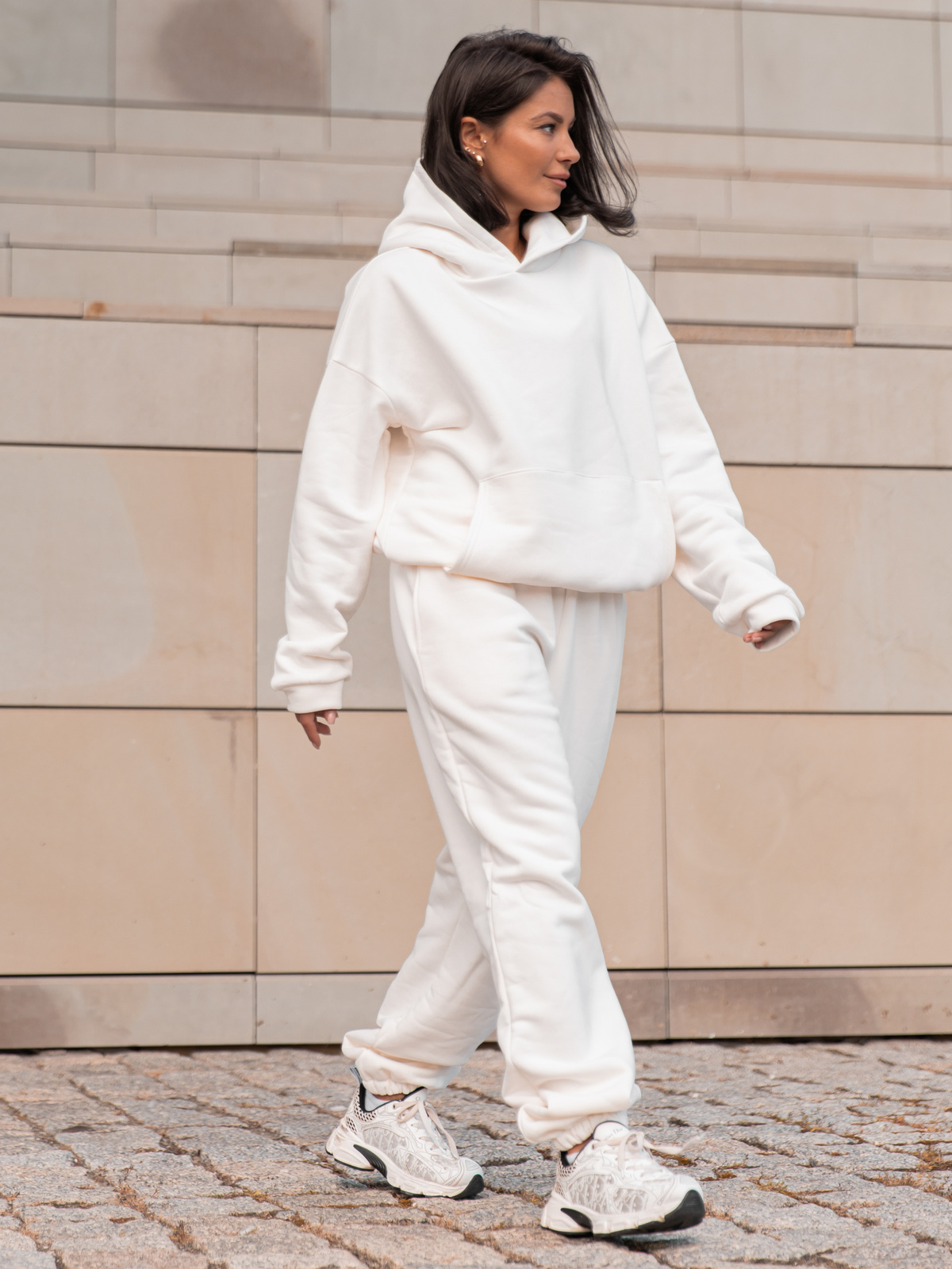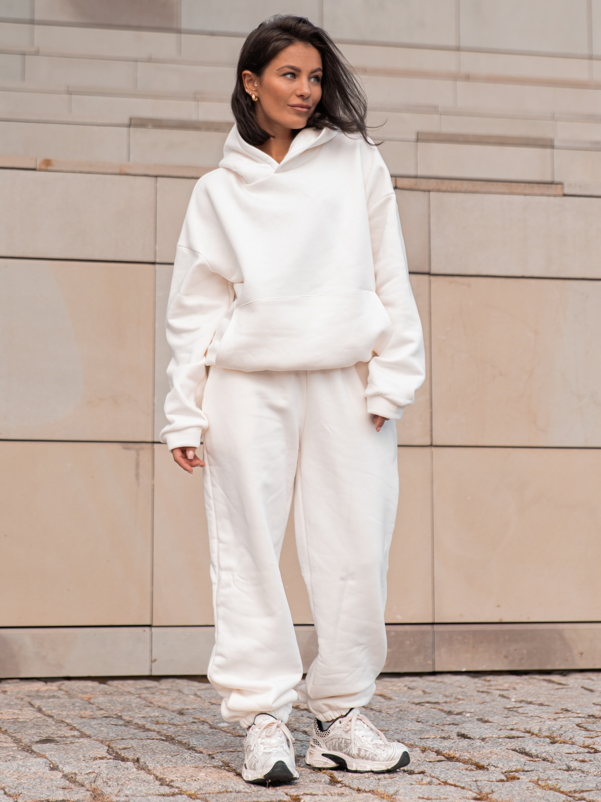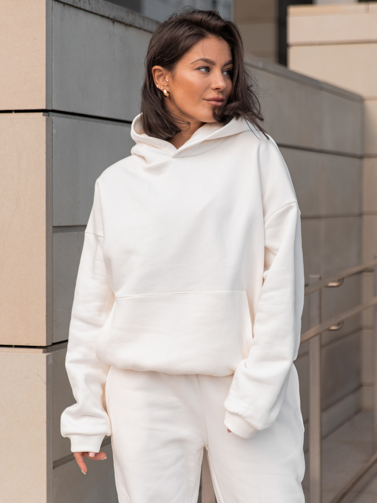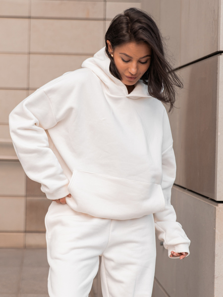 Dresowa bawełniana BLUZA z kapturem kangurka o klasycznym kroju ecru X350