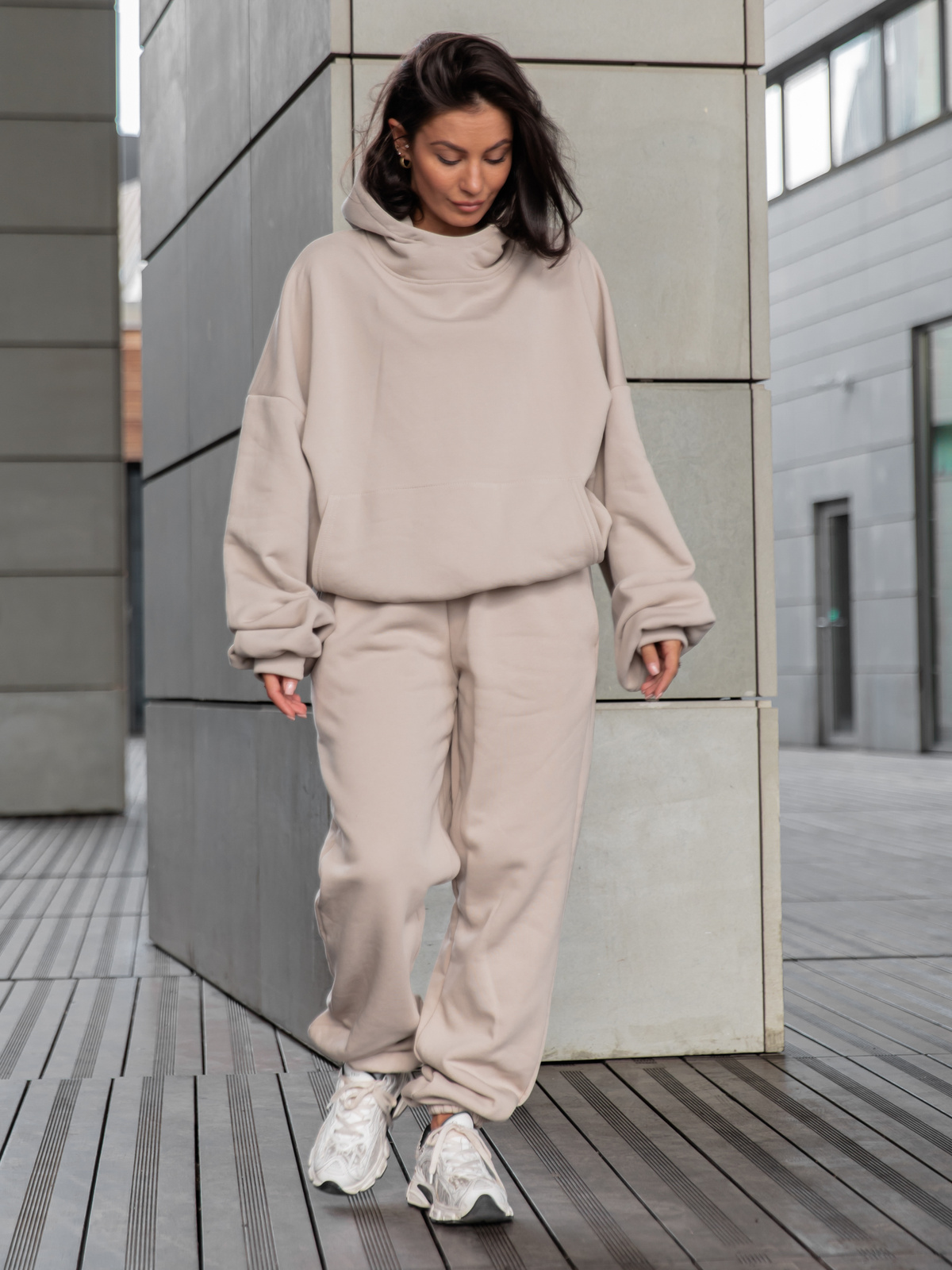 Materiał ten nie tylko otula ciepłem, ale również pozwala skórze oddychać, co czyni je świetnym wyborem na każdą porę roku. Stonowane kolory i minimalistyczny design sprawiają, że można je łatwo łączyć z ulubionymi T-shirtami, bluzami czy nawet eleganckimi dodatkami dla efektu "sportowej elegancji". Detale, takie jak delikatne przeszycia czy praktyczne kieszenie, dodają spodniom charakteru i podkreślają ich uniwersalność. SPODNIE baggy to must-have w garderobie każdego, kto chce łączyć luz z wyrafinowanym stylem. Spróbuj zestawić je z masywnymi sneakersami i oversize'ową bluzą – gwarantujemy, że przyciągniesz spojrzenia!