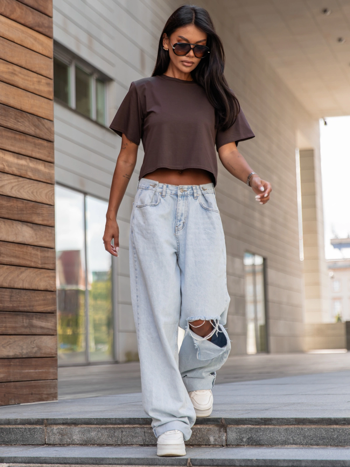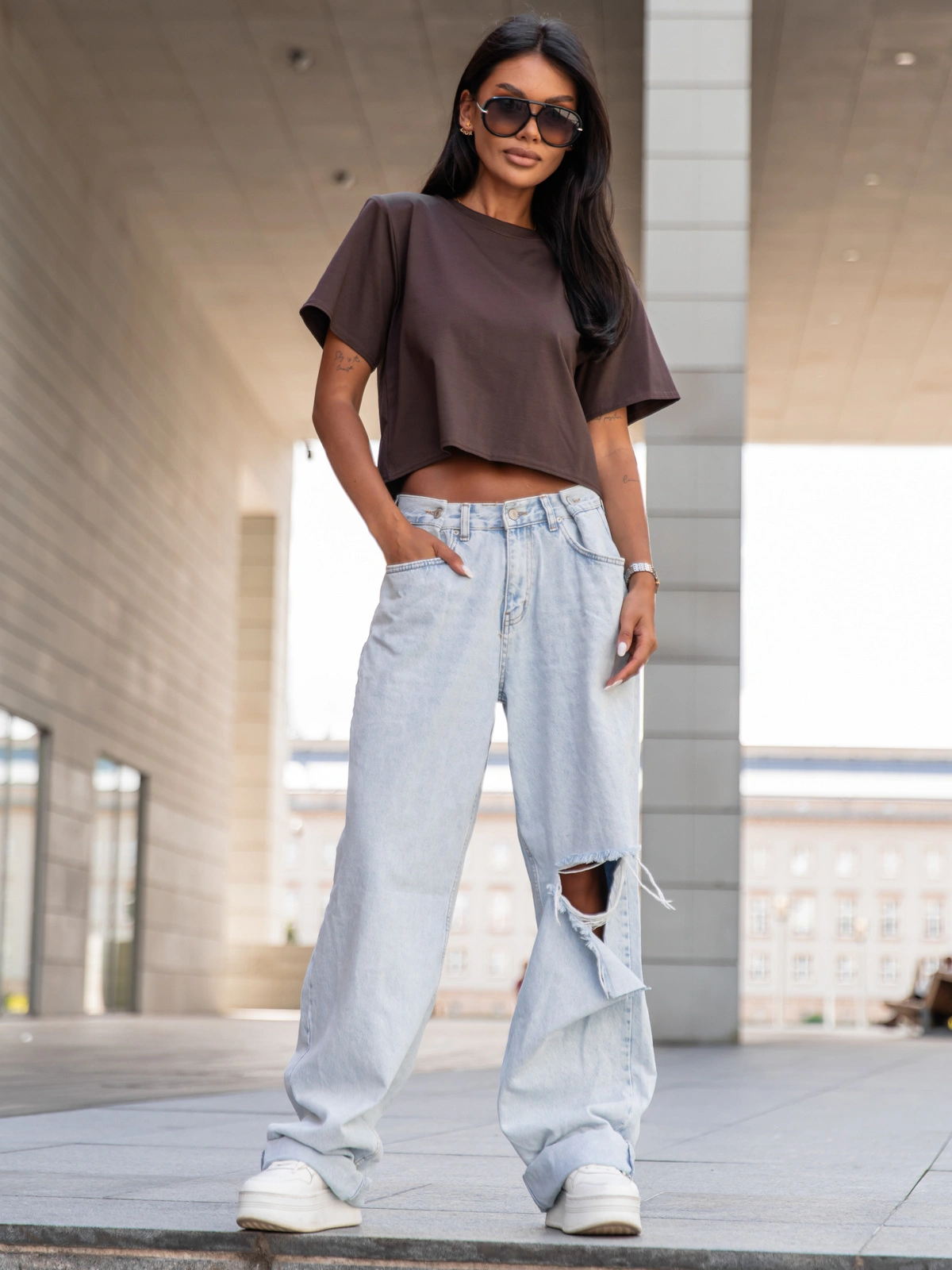 Lekka i wygodna – idealna do codziennych stylizacji. Krótszy fason świetnie komponuje się z jeansami, spódnicą czy spodniami z wysokim stanem, podkreślając sylwetkę i nadając nowoczesnego charakteru. Luźny krój zapewnia swobodę ruchów, a krótki rękaw sprawia, że bluzka doskonale sprawdzi się w cieplejsze dni lub jako baza pod marynarkę czy kardigan.