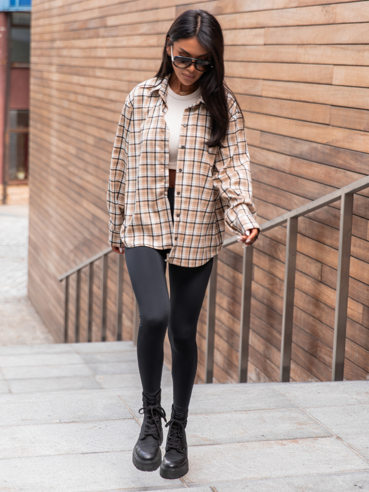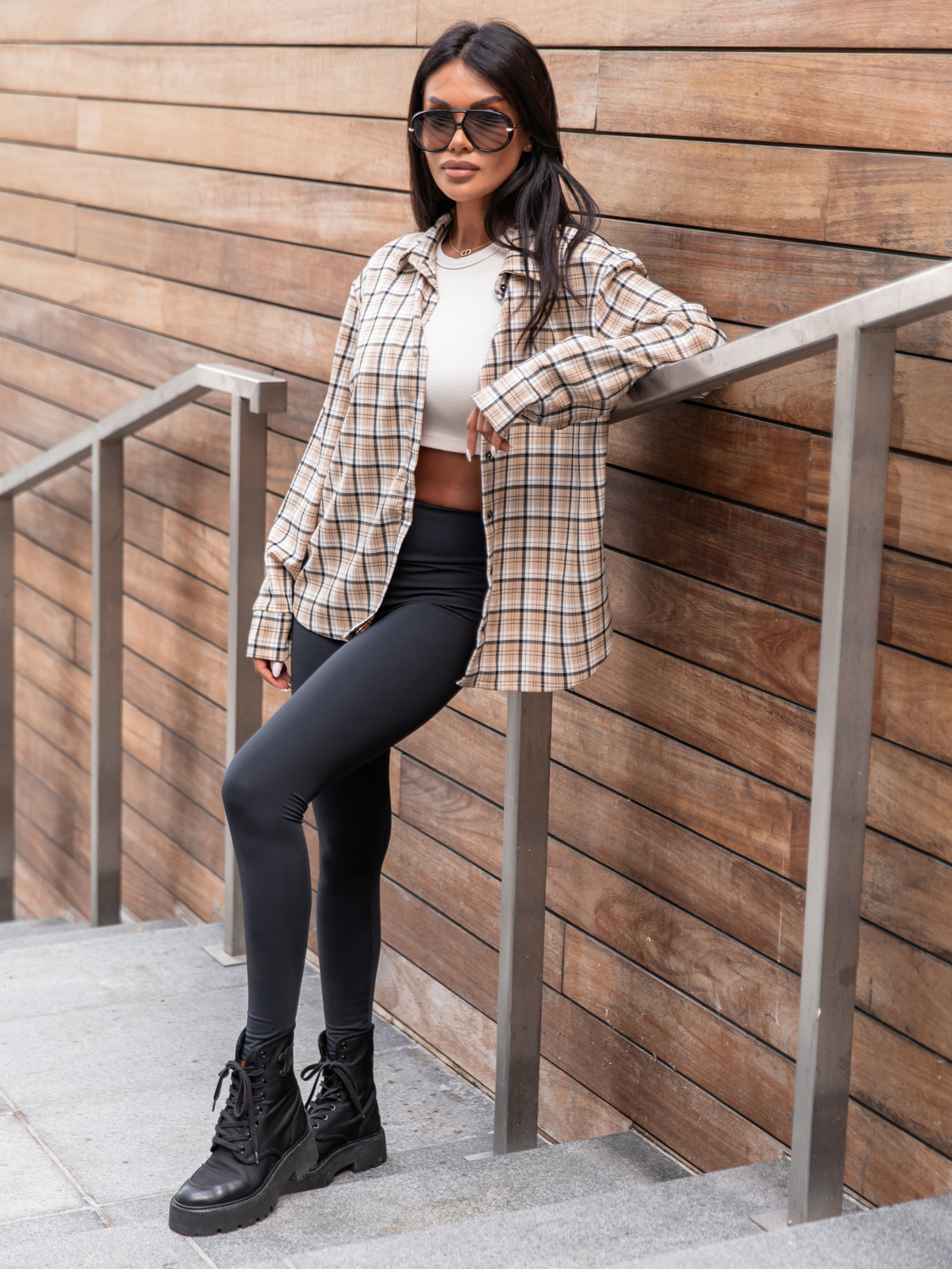 Oversizowa KOSZULA w kratę beżową wzór 2 X363