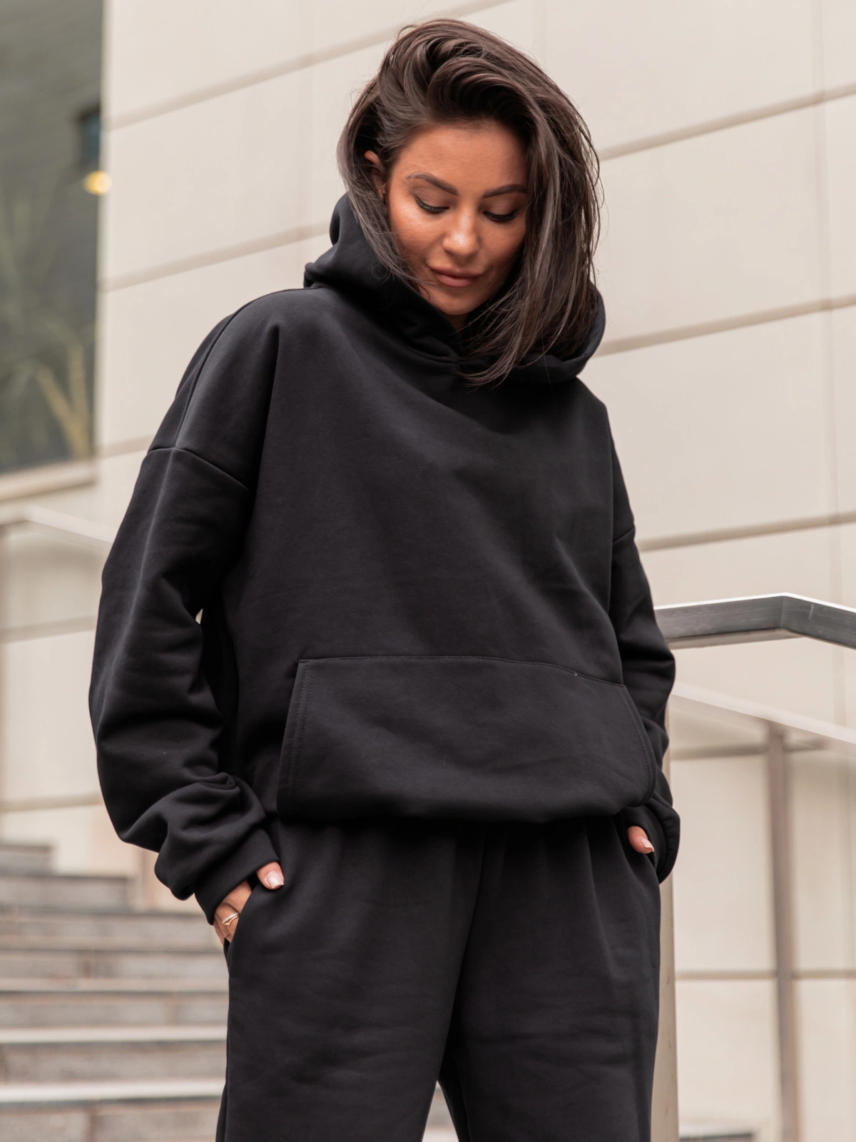 Dresowa bawełniana BLUZA z kapturem kangurka o klasycznym kroju czarna X350 (1 szt.)