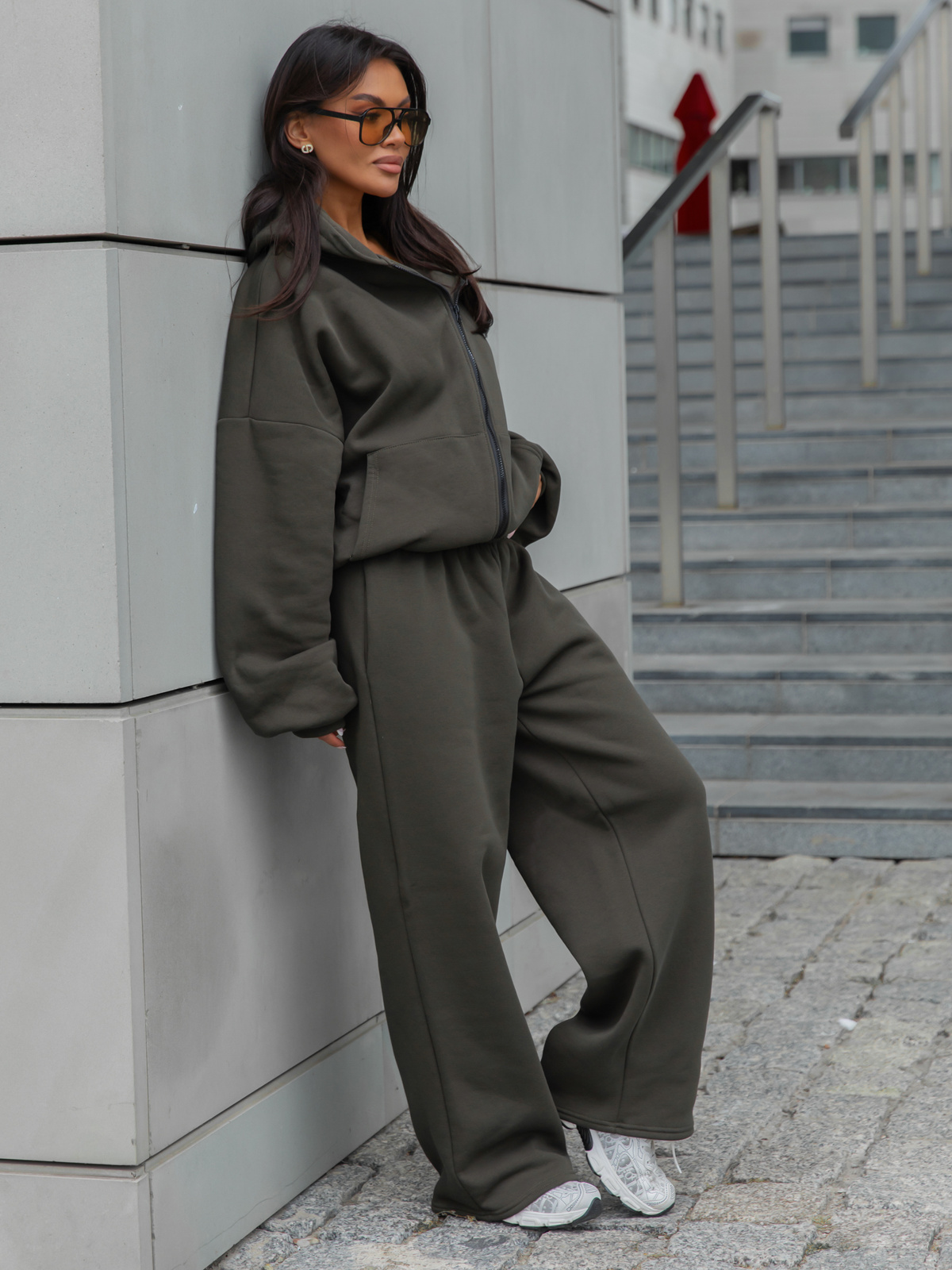 Luźne spodnie z gumką w pasie. Uszyte z bawełnianej dzianiny dresowej drapanej od wewnątrz, dzięki czemu jest przyjemny w noszeniu. Materiał premium od polskiego producenta. Materiał ten nie tylko otula ciepłem, ale również pozwala skórze oddychać, co czyni je świetnym wyborem na każdą porę roku. Stonowane kolory i minimalistyczny design sprawiają, że można je łatwo łączyć z ulubionymi T-shirtami, bluzami czy nawet eleganckimi dodatkami dla efektu "sportowej elegancji".