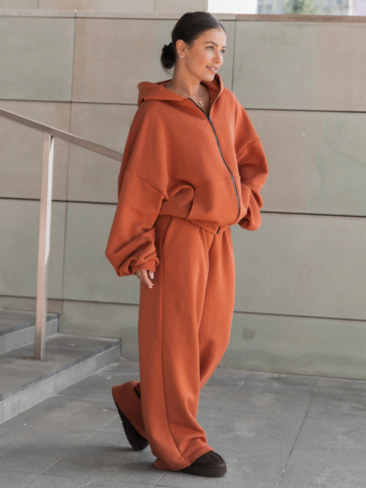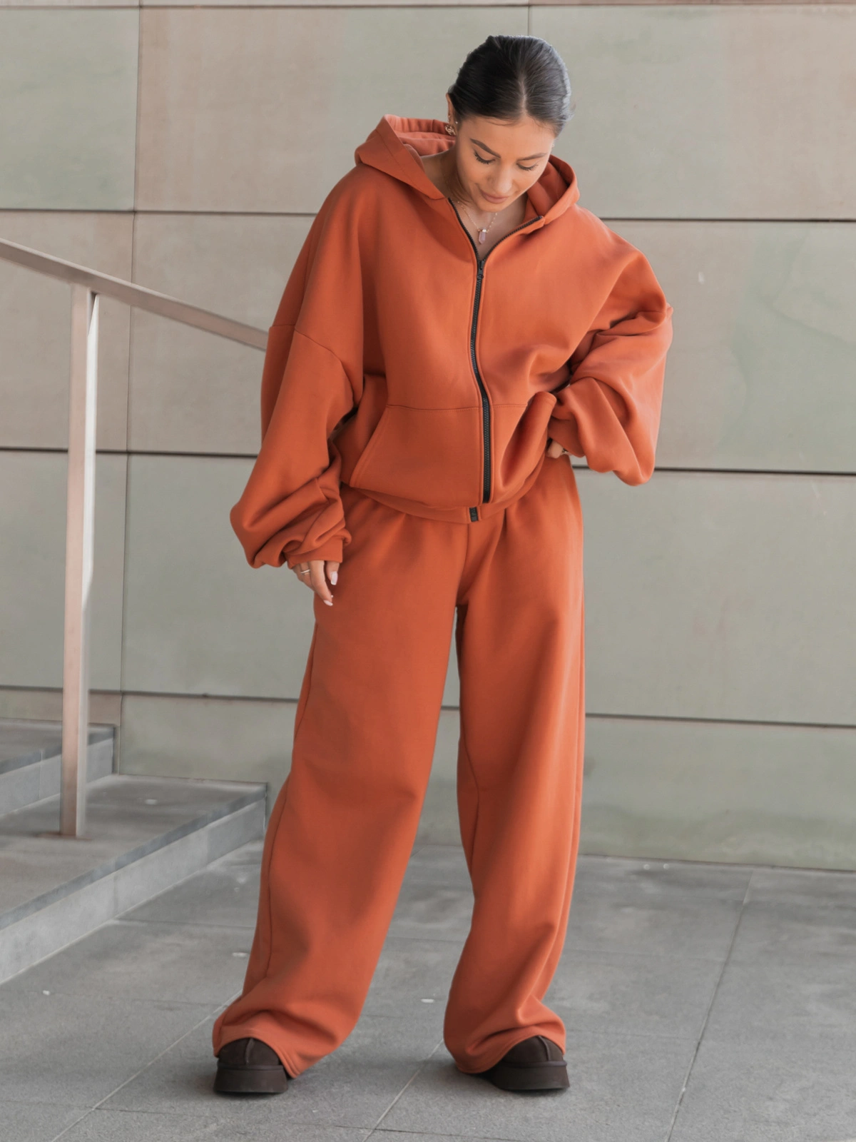 Luźne spodnie z gumką w pasie. Uszyte z bawełnianej dzianiny dresowej drapanej od wewnątrz, dzięki czemu jest przyjemny w noszeniu. Materiał premium od polskiego producenta. Materiał ten nie tylko otula ciepłem, ale również pozwala skórze oddychać, co czyni je świetnym wyborem na każdą porę roku. Stonowane kolory i minimalistyczny design sprawiają, że można je łatwo łączyć z ulubionymi T-shirtami, bluzami czy nawet eleganckimi dodatkami dla efektu "sportowej elegancji".