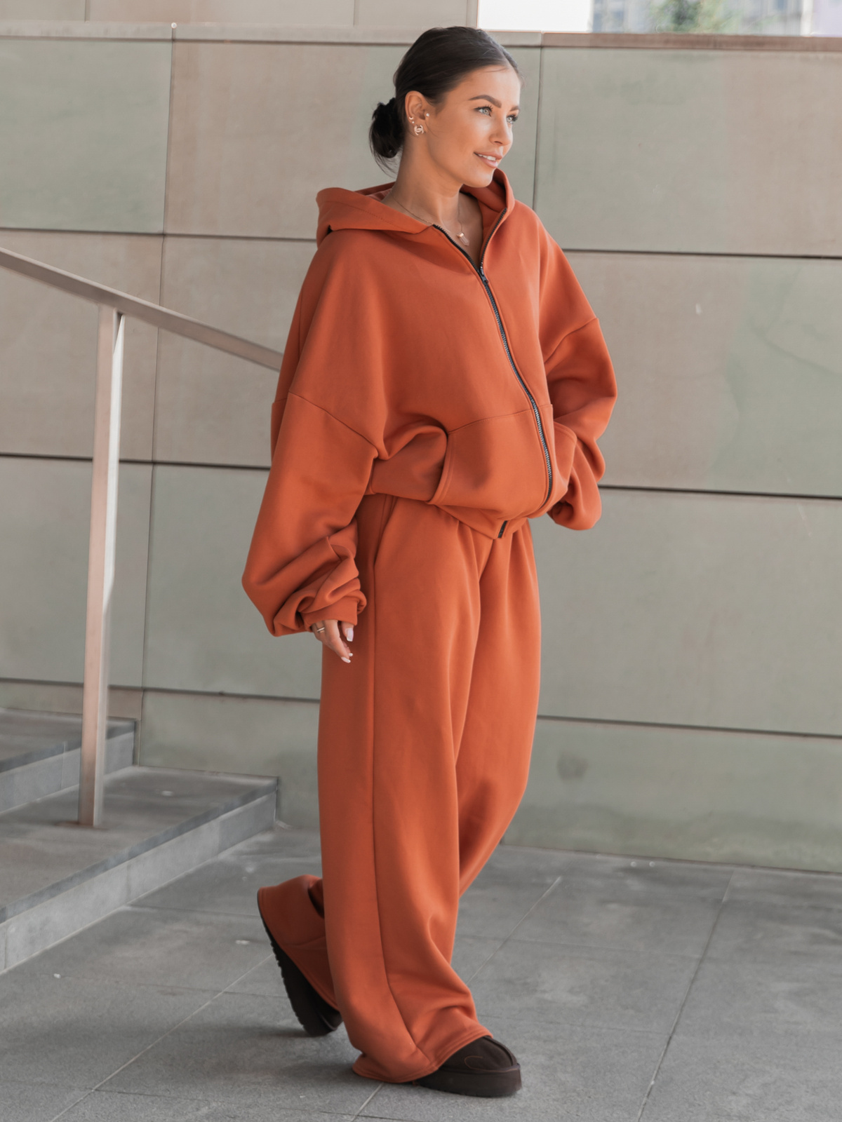Dresowe bawełniane SPODNIE z szerokimi nogawkami pumpkin orange X31