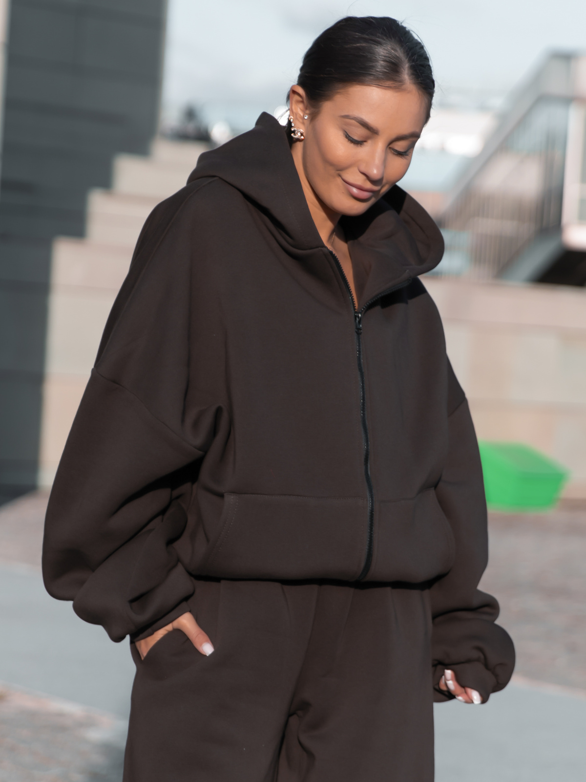 Dresowe bawełniane SPODNIE z szerokimi nogawkami dark chocolate X31