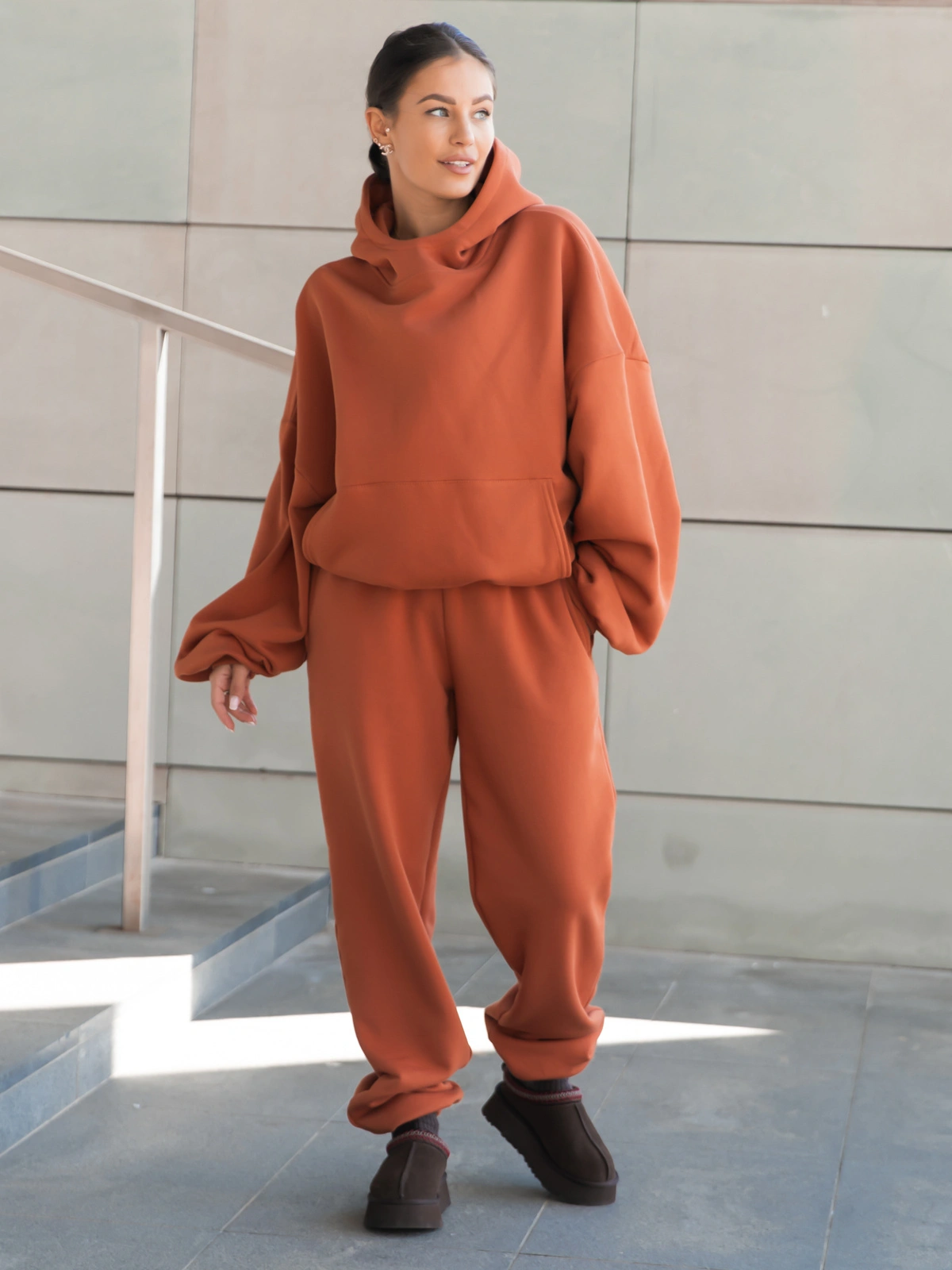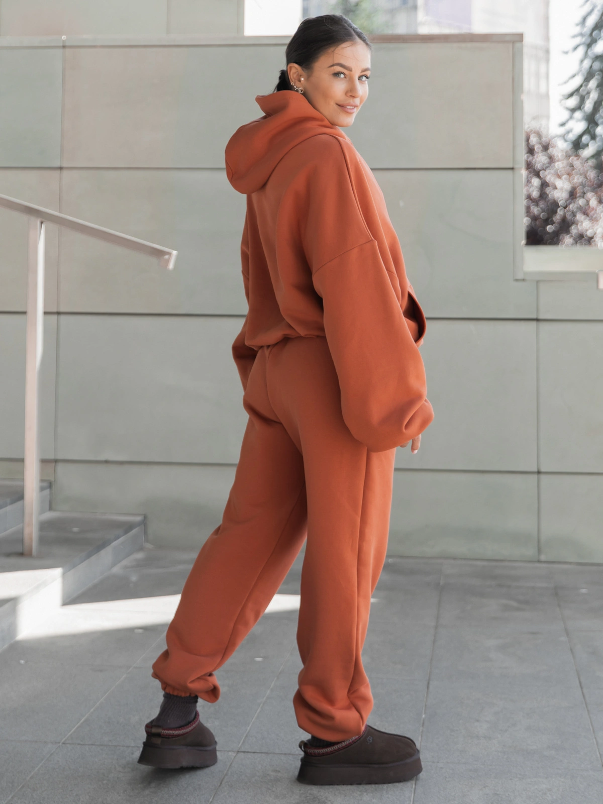 Dresowe bawełniane SPODNIE ze ściągaczami pumpkin orange X32 k01