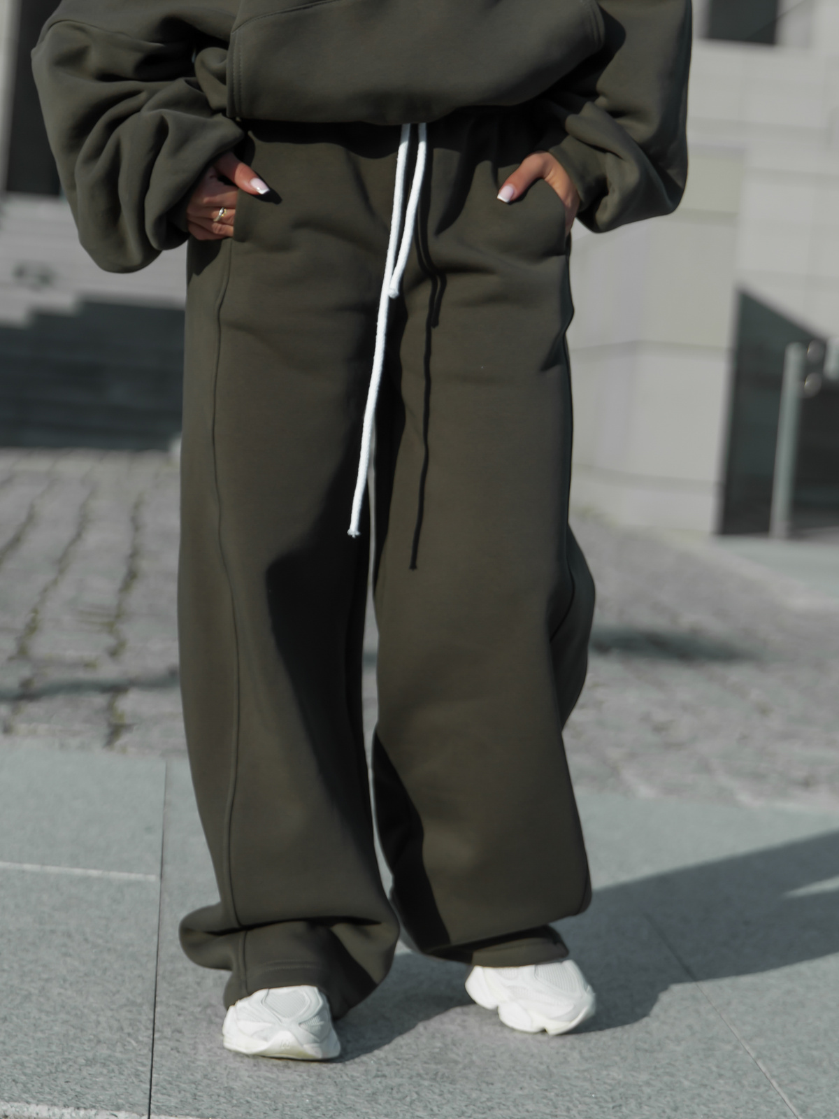 Luźne spodnie z gumką w pasie. Uszyte z bawełnianej dzianiny dresowej drapanej od wewnątrz, dzięki czemu jest przyjemny w noszeniu. Materiał premium od polskiego producenta. Materiał ten nie tylko otula ciepłem, ale również pozwala skórze oddychać, co czyni je świetnym wyborem na każdą porę roku. Stonowane kolory i minimalistyczny design sprawiają, że można je łatwo łączyć z ulubionymi T-shirtami, bluzami czy nawet eleganckimi dodatkami dla efektu "sportowej elegancji".